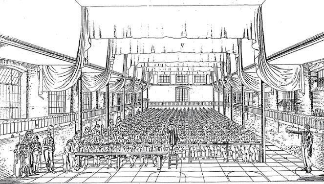 Figure 2.2 Lancaster, Joseph. Lancaster classroom typology. 1774. Illustration. British Schools Musuem.https://britishschoolsmuseum.org.uk/discover/josephlancaster/.