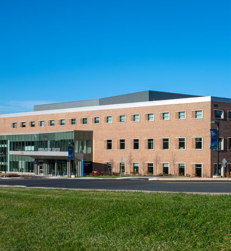 impactful statement as the new front door to the campus. The ambulatory center allows for better patient accessibility and a more centralized location of services provided to patients. The new site provides increased and dedicated parking for rehab and surgery patients as well as more patient friendly curb less entry into the building.