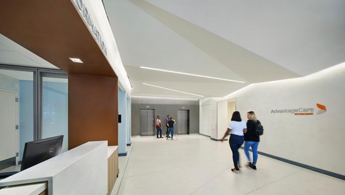 A modern, cutting-edge development at a prominent intersection in Brooklyn provides a comprehensive care experience for the community. With major highway access, subway stations and high-traffic bus routes, the building truly serves to expand this System’s services to a large population. The neighborhood care center occupies a portion of the first floor with its own entrance while connecting internally to specialty services.