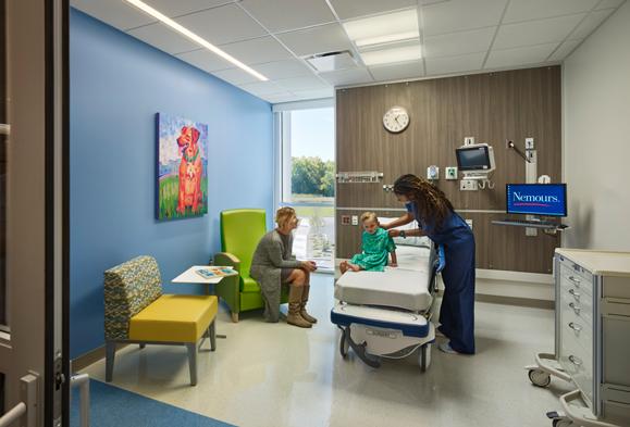 for all specialties and primary care. Using this universal room in a standardized pod configuration allows Indian River to flex the boundaries of each individual service line on a moment’s notice without the need for renovation or cost.