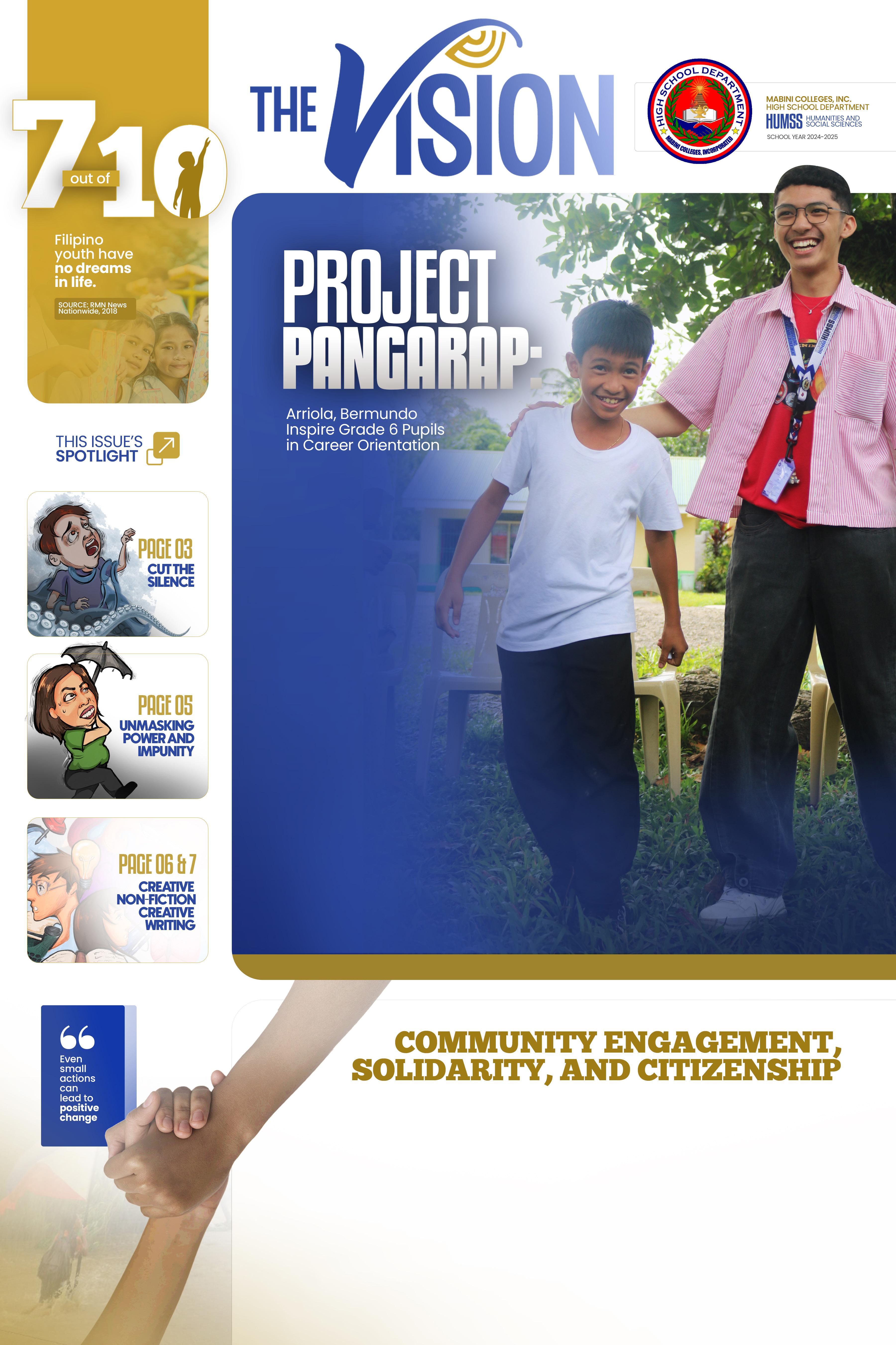 to tackle significant global issues. Our studies inspire us to ask important questions and approach problems with empathy and open-mindedness. As we engage with real-world issues, we learn to listen, reflect, and take meaningful action. We are not just learning to solve problems—we are being prepared to change lives. With the knowledge and compassion we’ve cultivated, HUMSS students are poised to be thoughtful, innovative leaders who will address global challenges and shape a future built on understanding, unity, and hope.