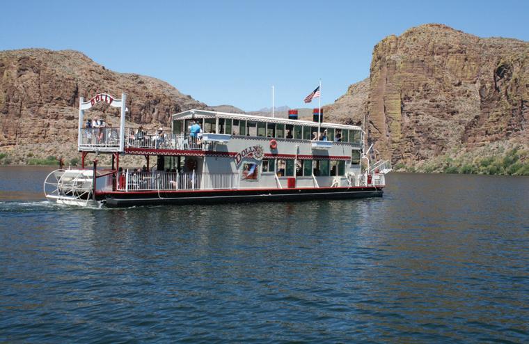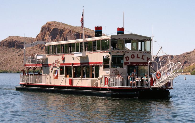 THE DOLLY STEAMBOAT— Double-decker sternwheeler offering narrated nature and catered dinner cruises. 16802 AZ-88, Tortilla Flat, 480.827.9144. dollysteamboat.com Valley Map M30