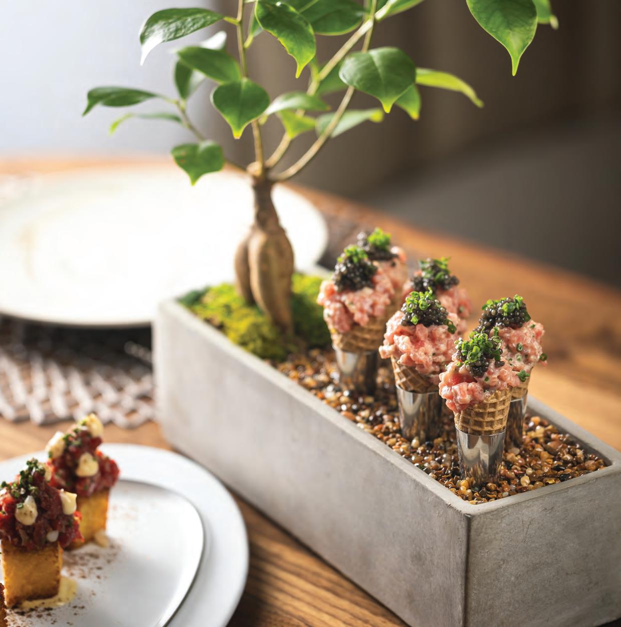 Dine on elevated New American cuisine, including tuna and caviar cones, the butcher’s best wagyu steak program, and tableside dish preparations that enhance the immersive dining experience.