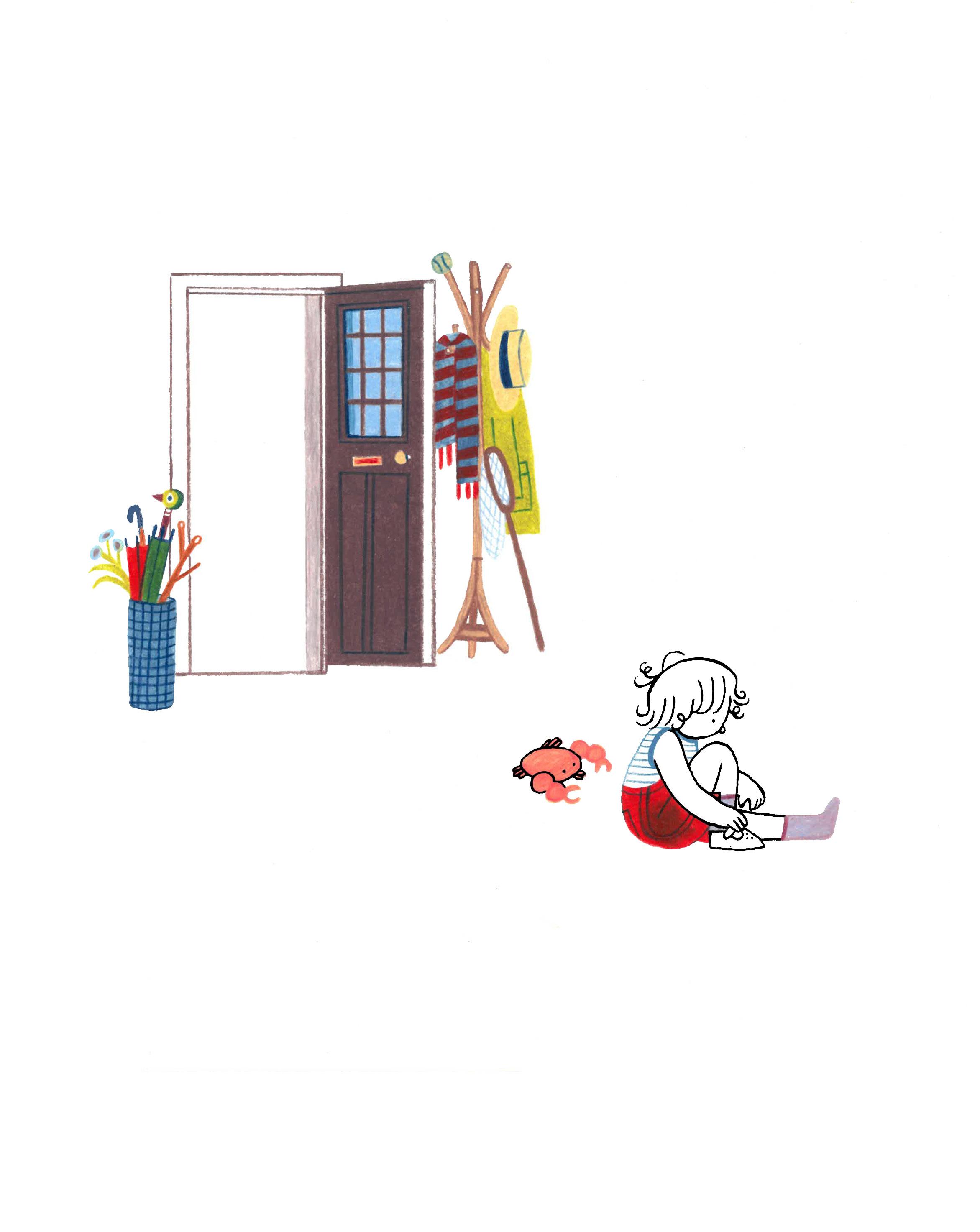 Sopra, in prima e quarta di copertina: particolari delle illustrazioni della diplomata Alice Ourghanlian, da “Cosa serve per sopravvivere su un’isola deserta?”, progetto tesi Master in uscita con Camelozampa.