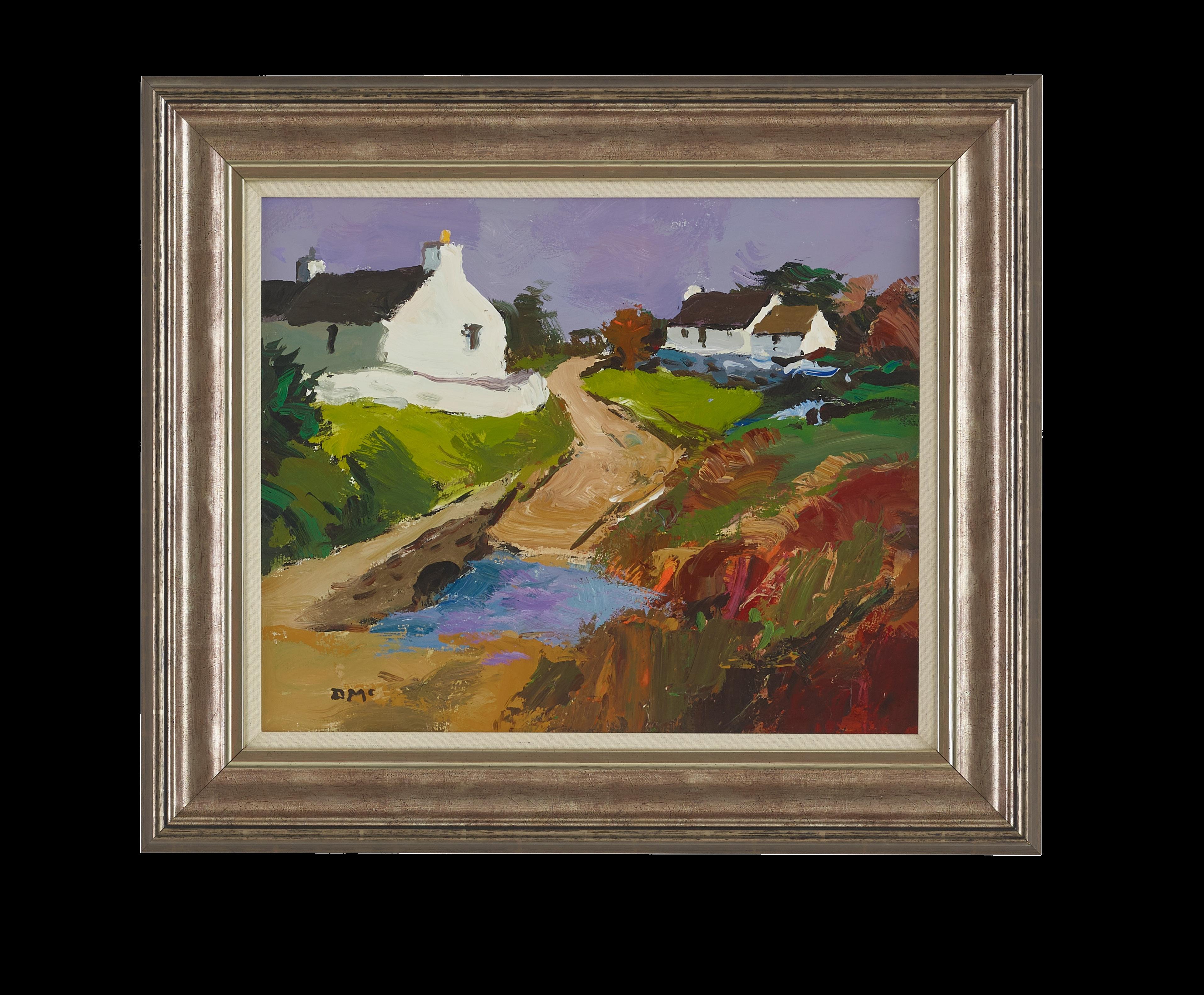 Born in 1923 in Yorkshire but brought up in North West Scotland, Donald Mclntyre studied at the Glasgow School of Art under James Wright At Garelochhead. He has exhibited at the London Galleries, Royal Cambrian Academy, Galleries Racines Brussels, Fosse Gallery and Thackery Gallery.