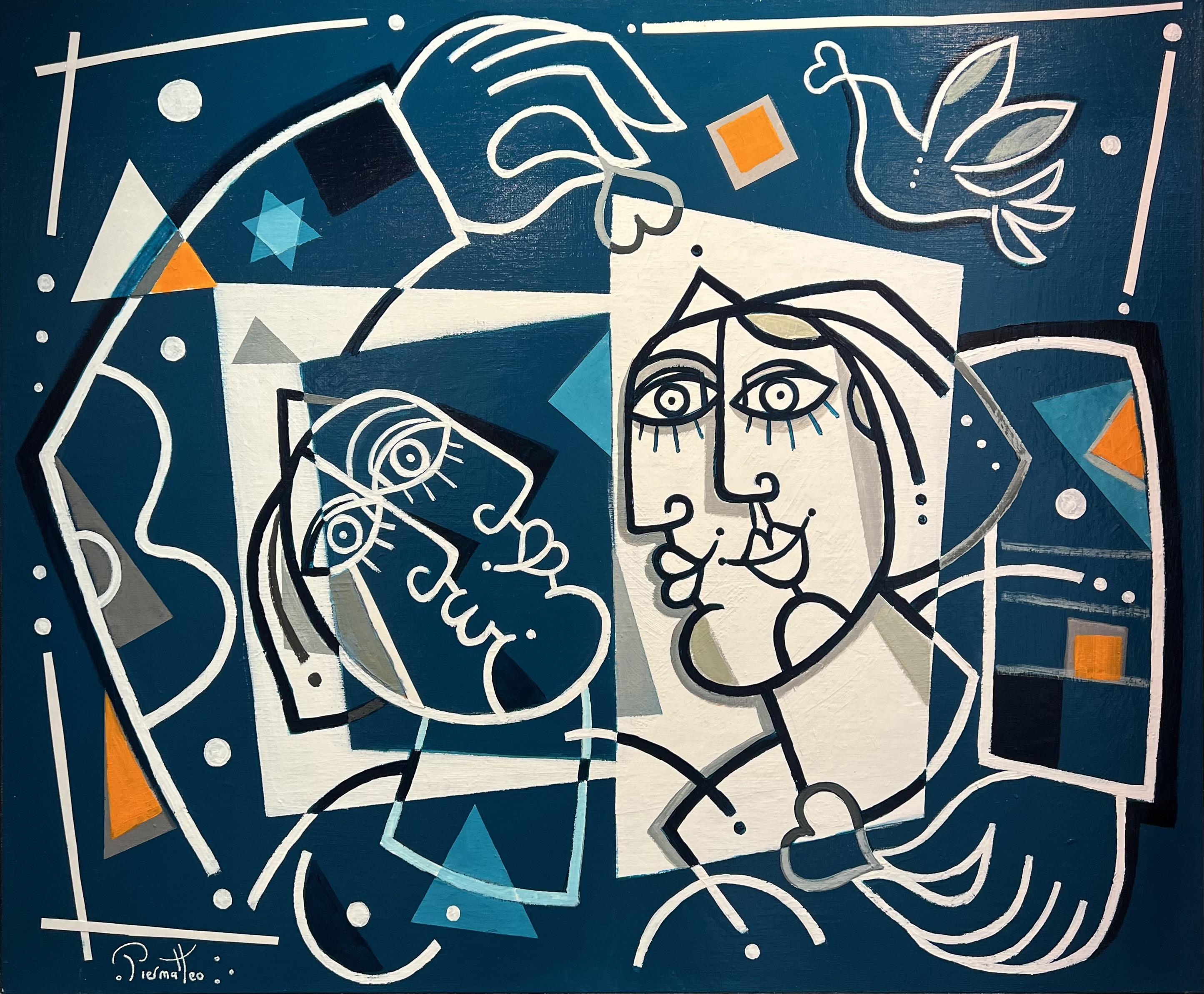 Piermatteo (b. 1963) - ‘Two Lovers’ Mixed Media on Canvas - 21” x 25½” - Signed