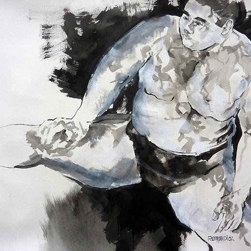 Ramon Diaz Rikishi’s Hold chinese ink & watercolor on paper