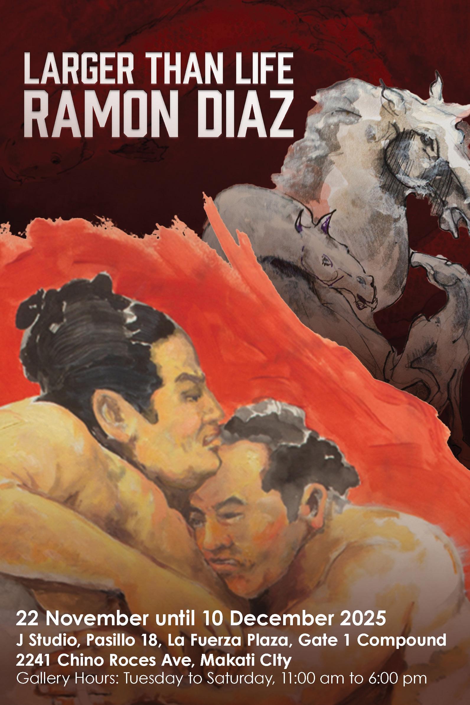 Besides the looming canvases of wrestlers and racehorses that fill one’s vision, it is ultimately the artist’s persona that reveals life at its largest.