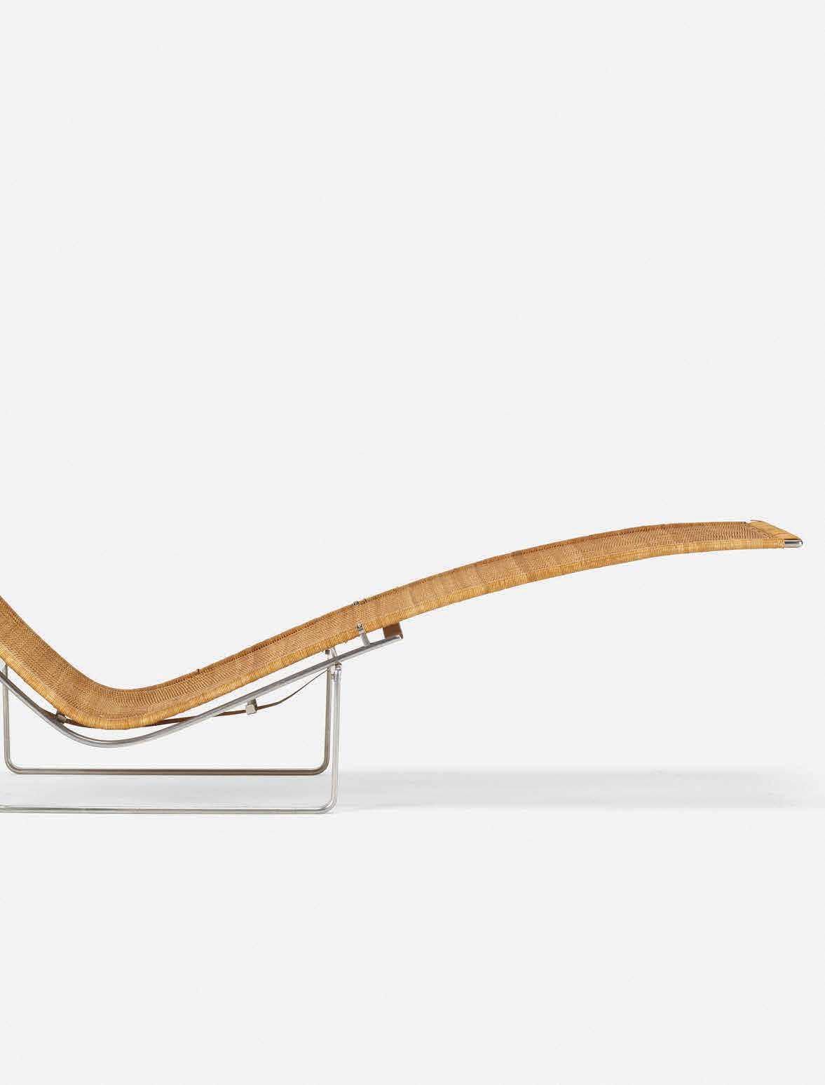 Poul Kjaerholm (Denmark, 1929–1980) A PK 24 ‘Hammock’ Chair or Lounger satin-brushed stainless steel, cane and leather originally designed in 1965, this example manufactured under license by Fritz Hansen $7000 – $12 000