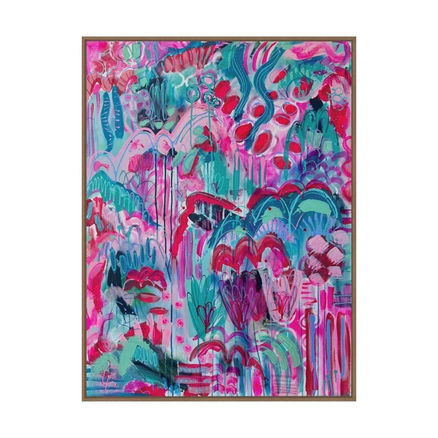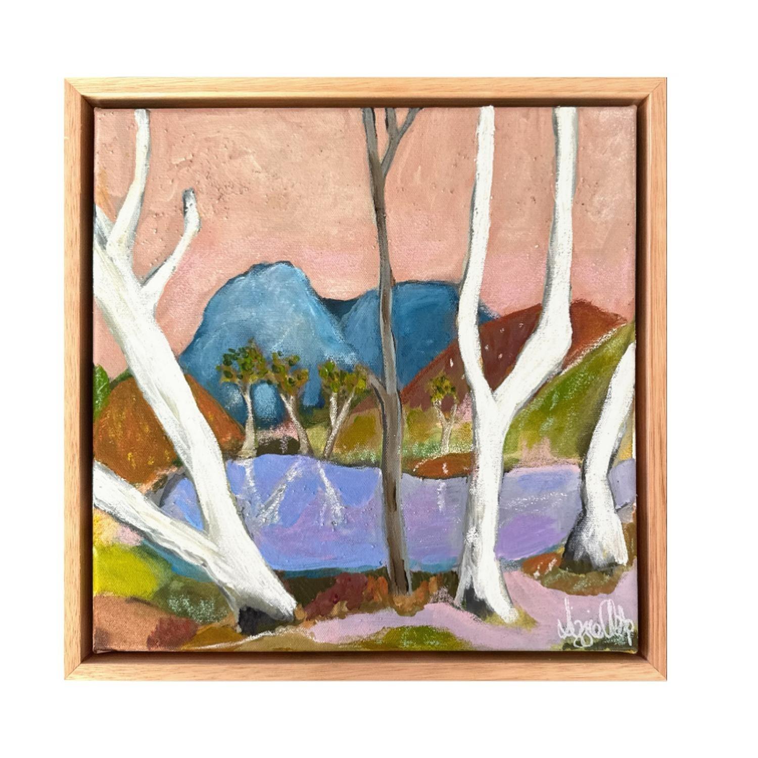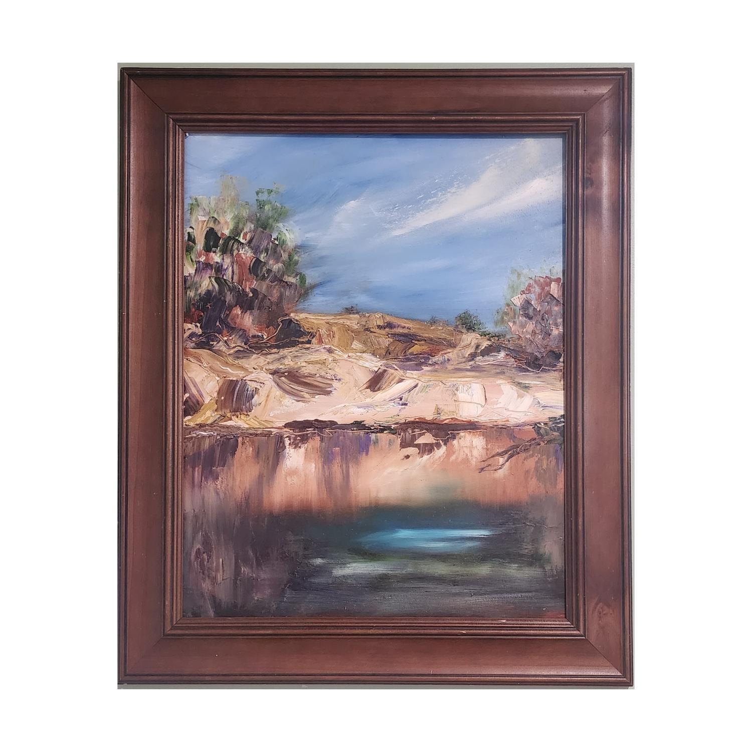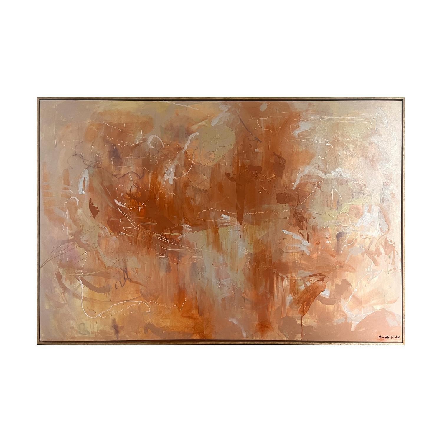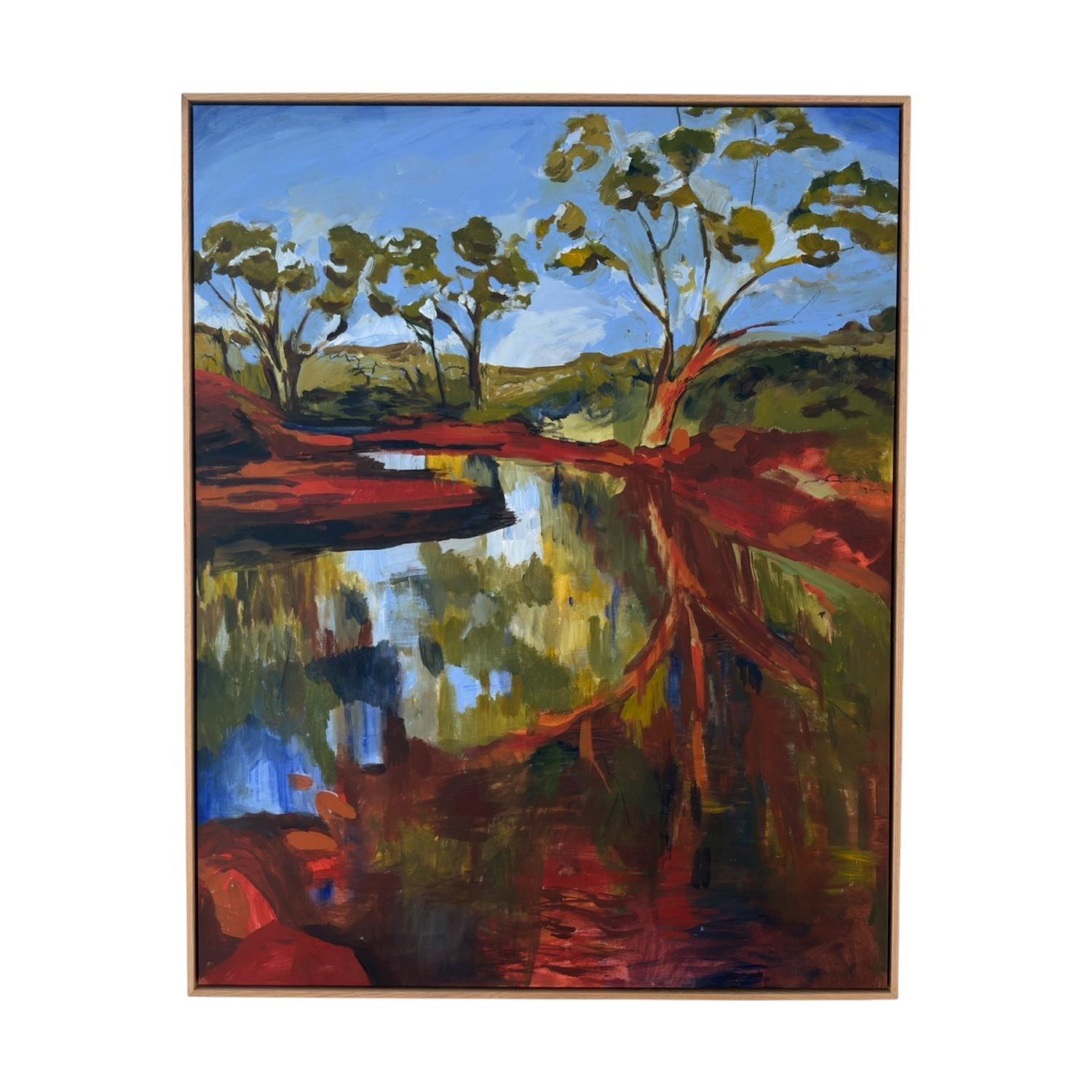 acrlyic paint on canvas framed in raw timber frame. (framed)