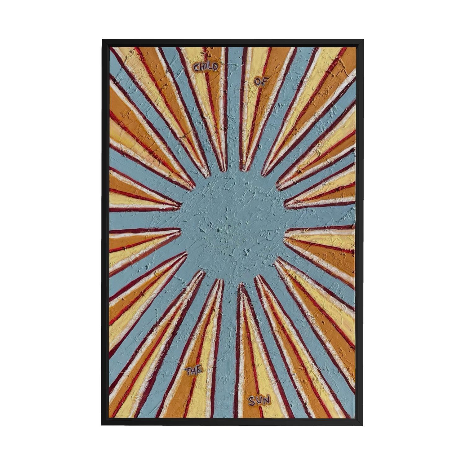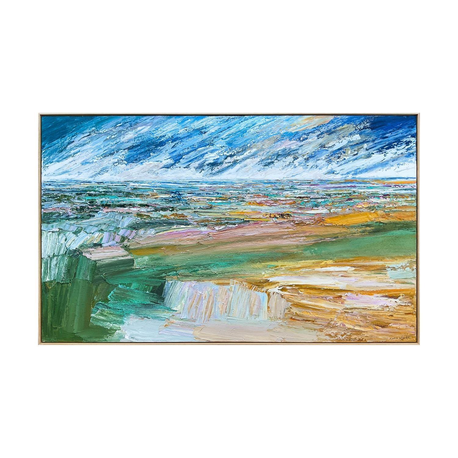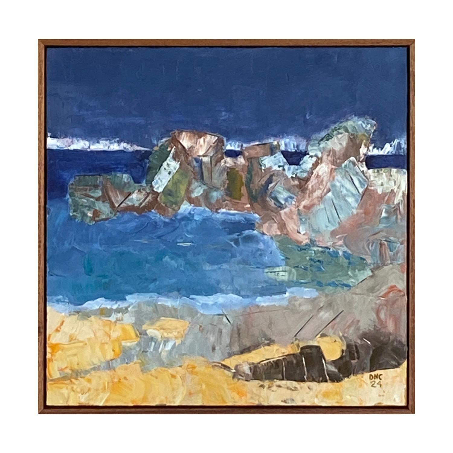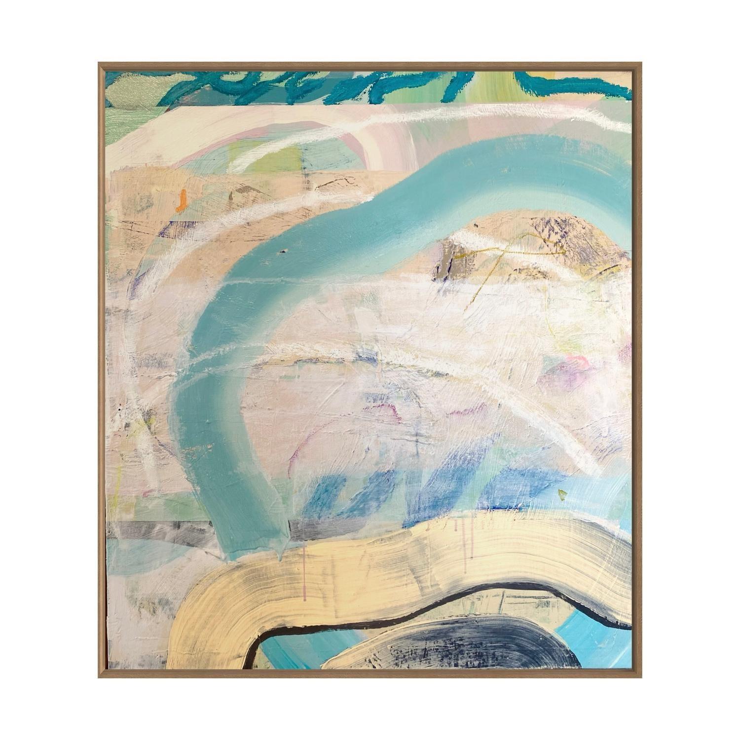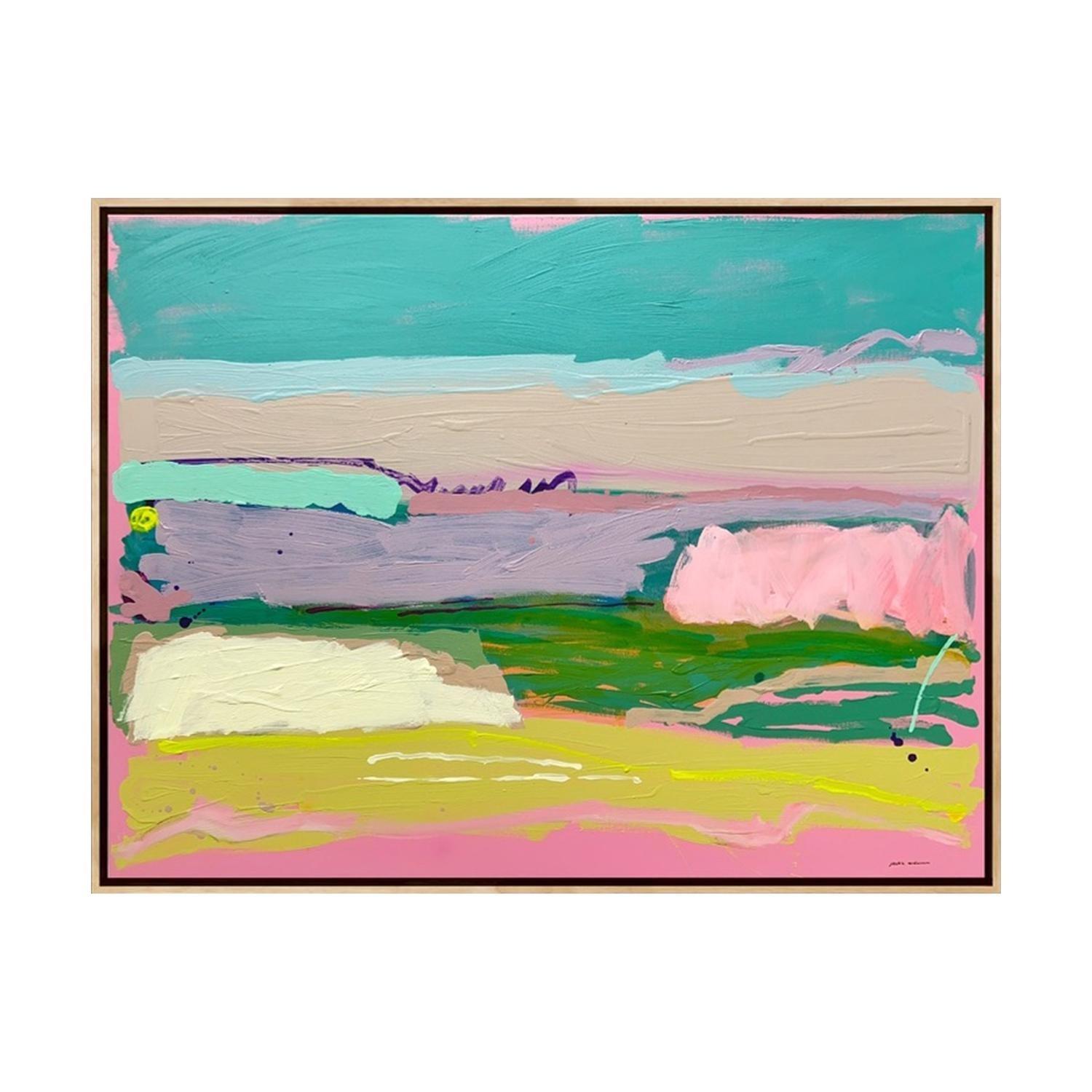acrlyic paint on canvas framed in raw timber frame. (framed)