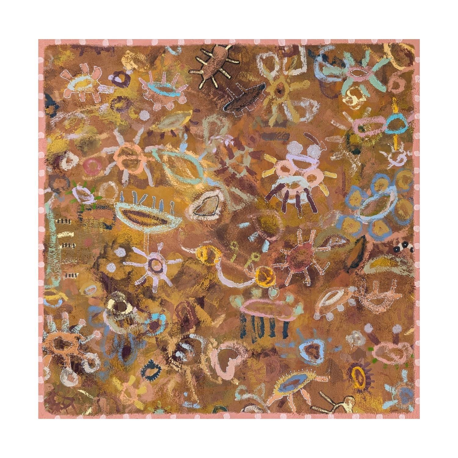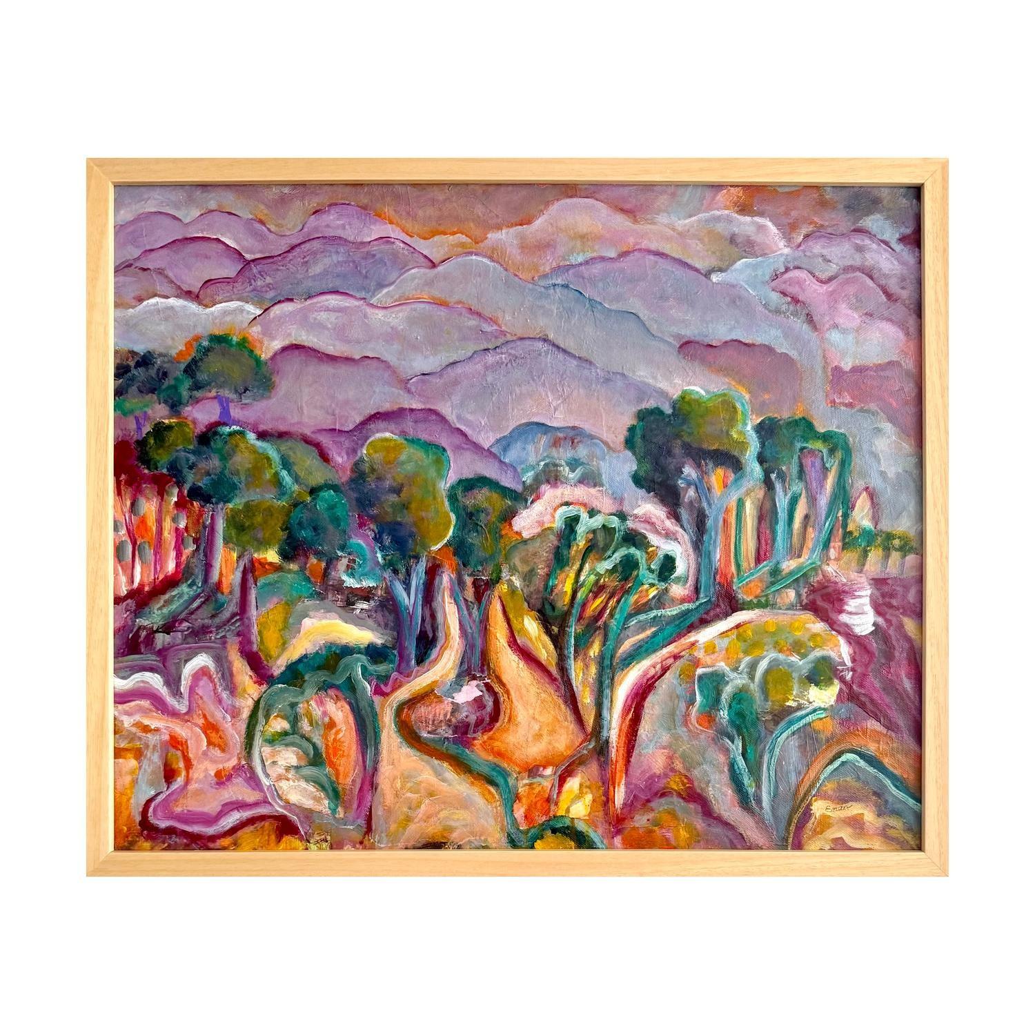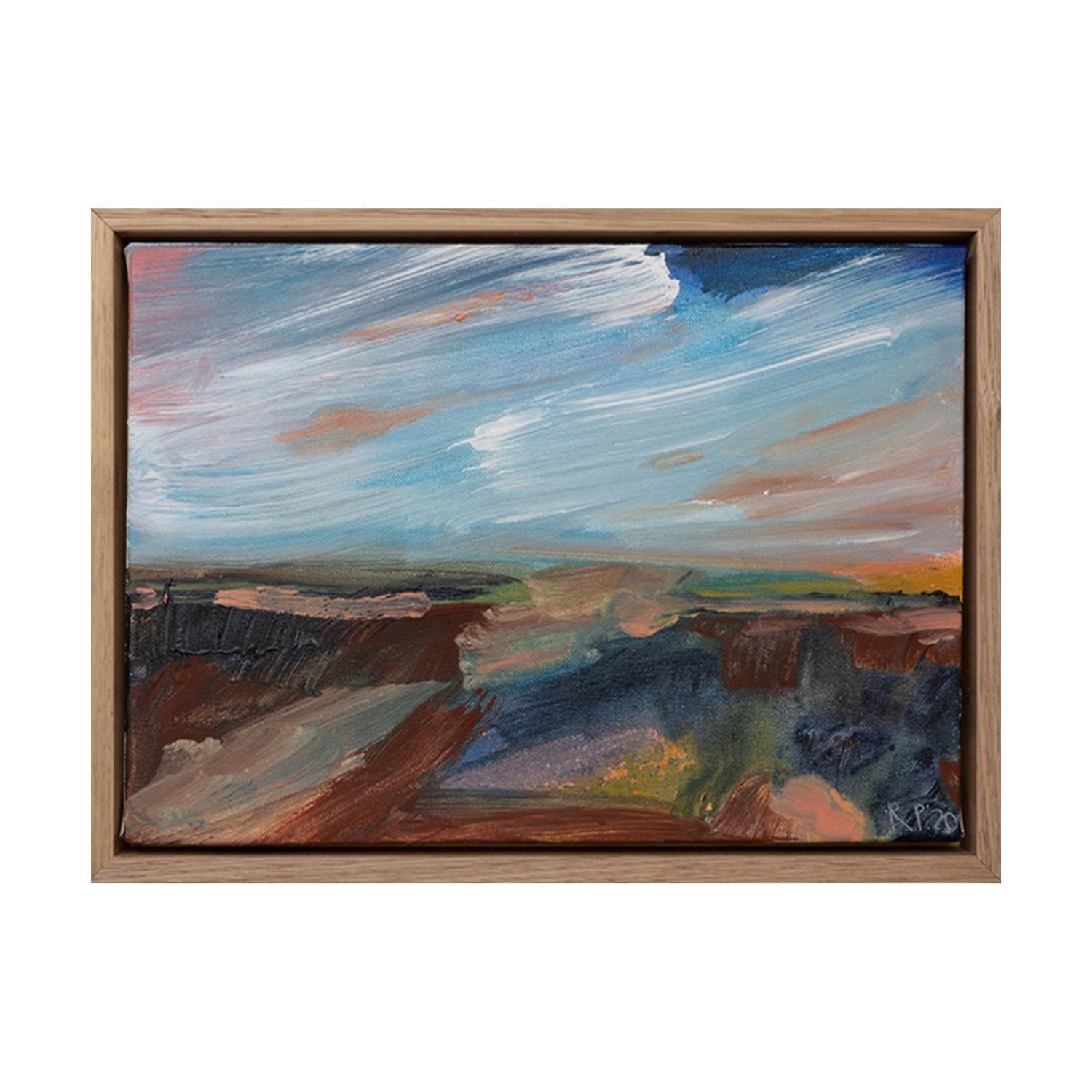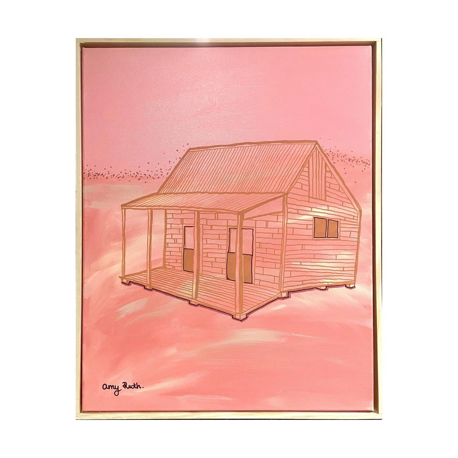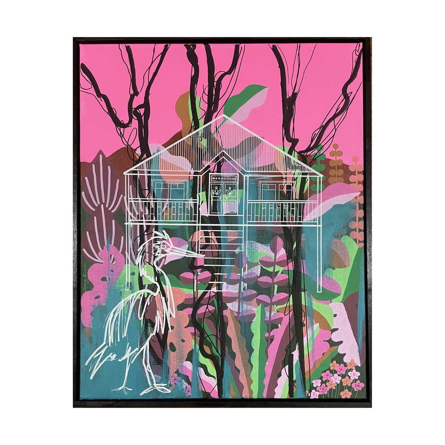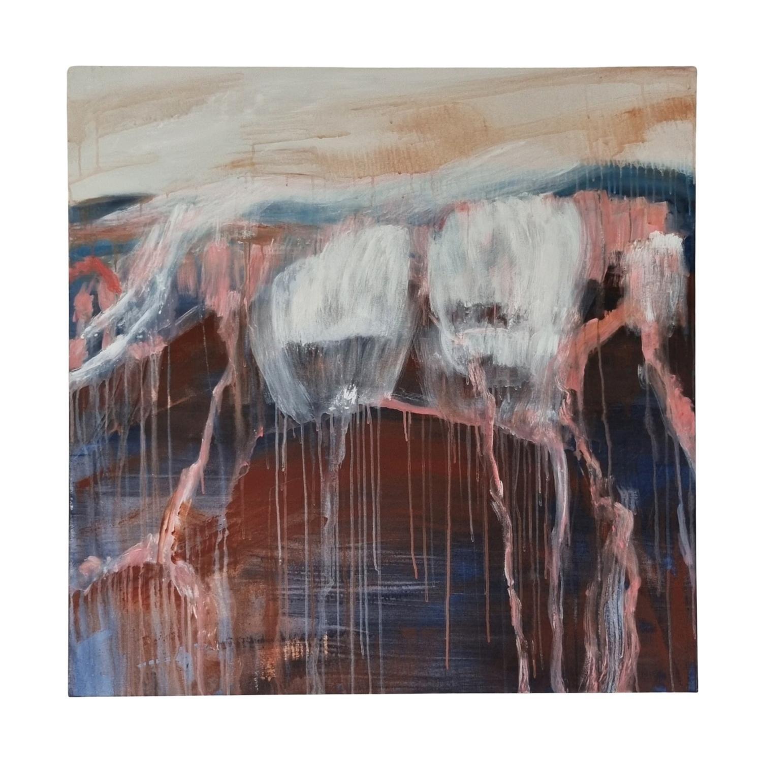 acrlyic paint on canvas framed in raw timber frame. (framed)