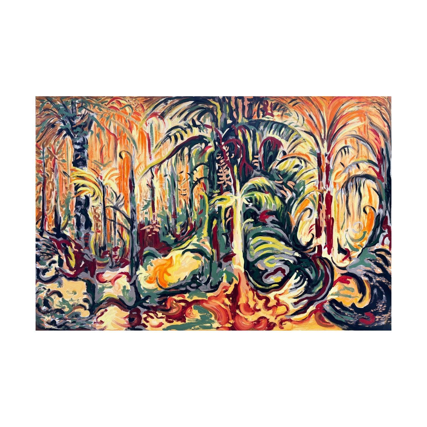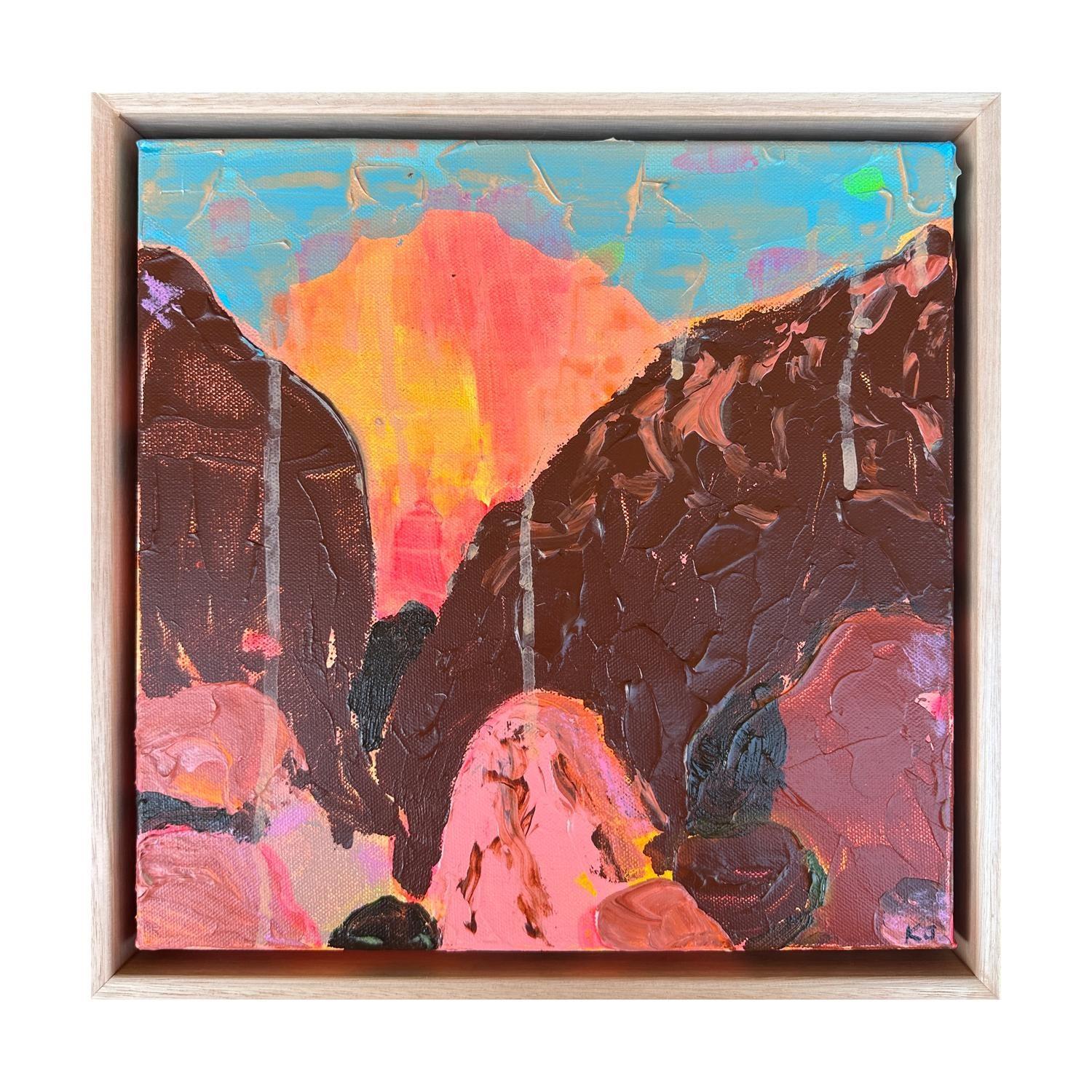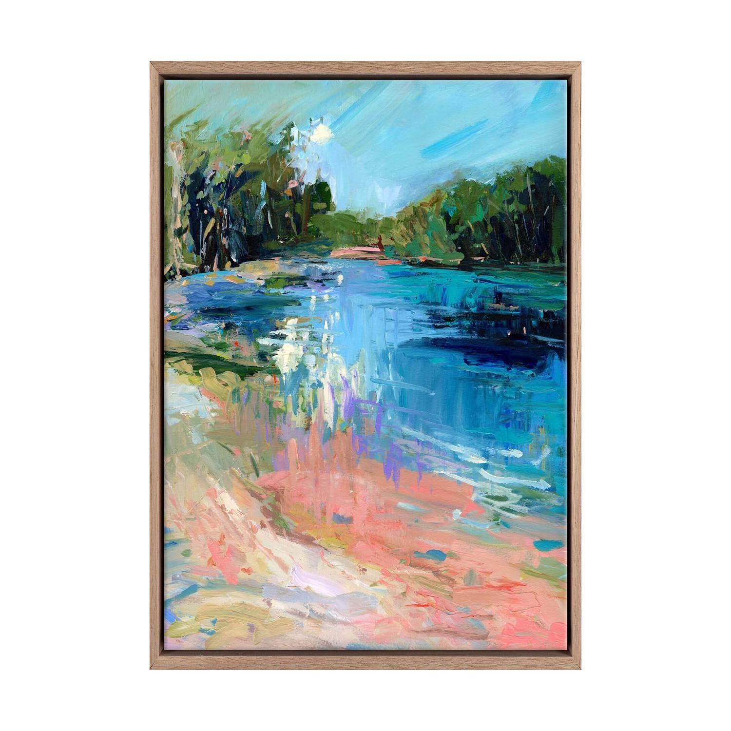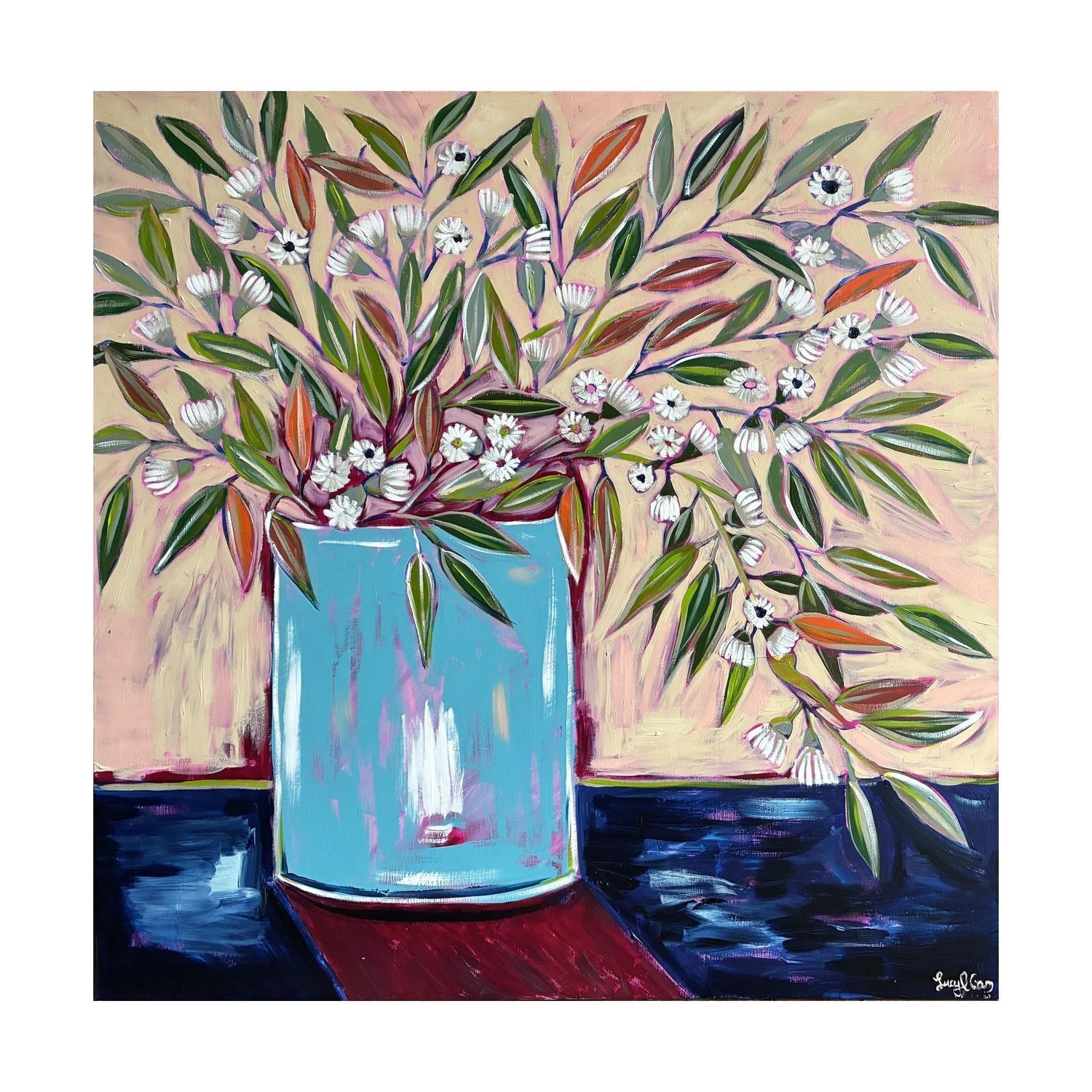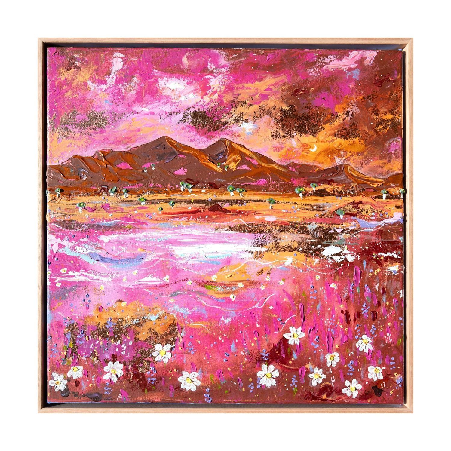 acrlyic paint on canvas framed in raw timber frame. (framed)
