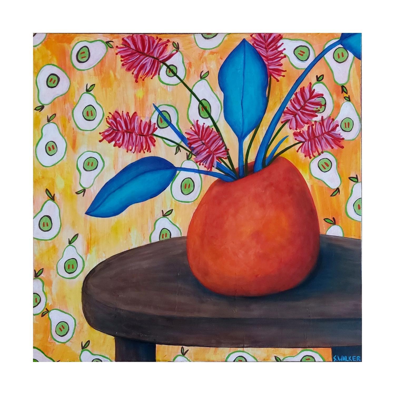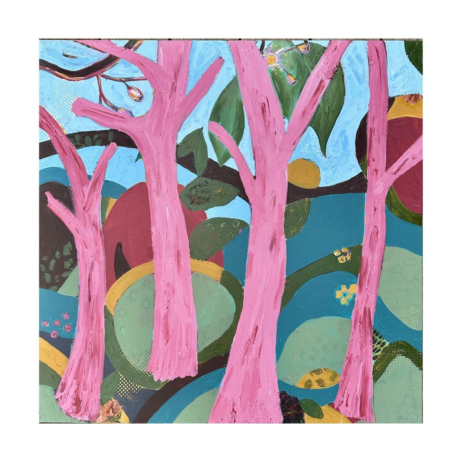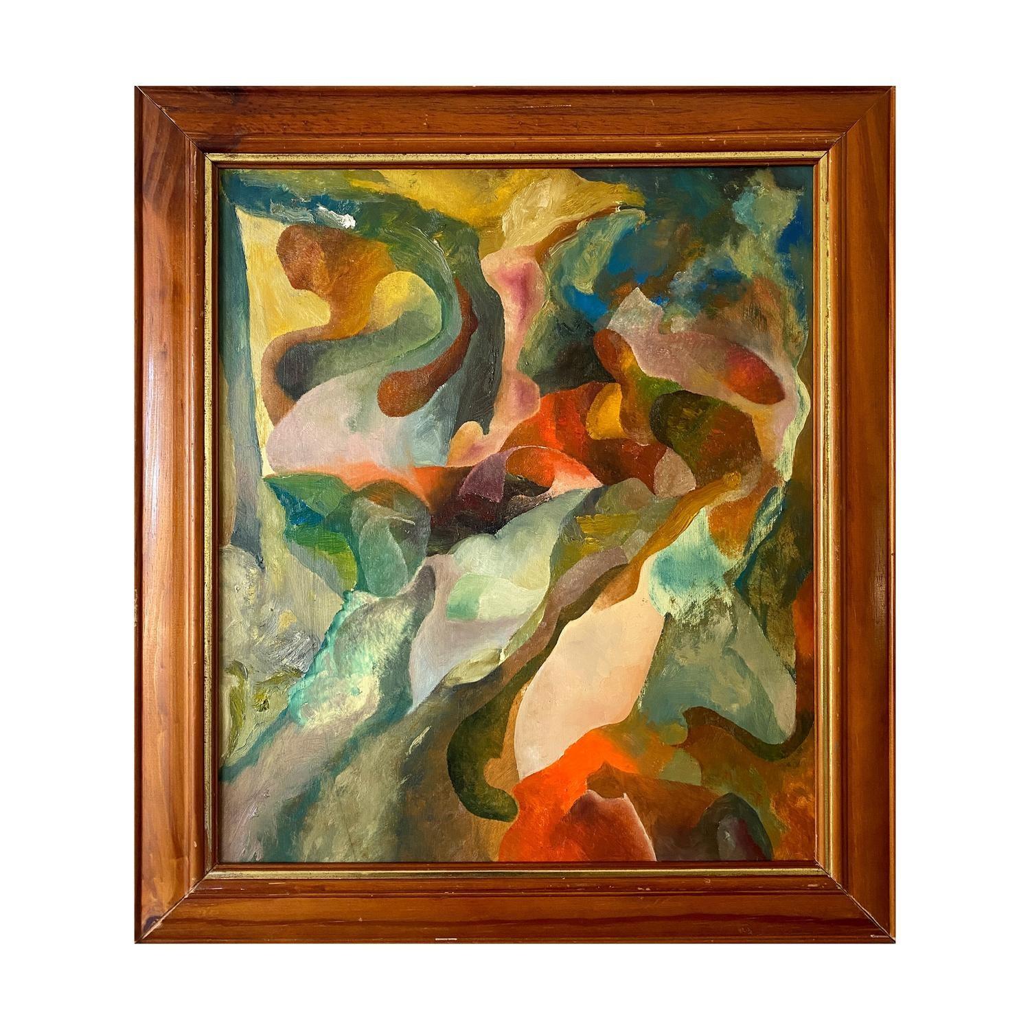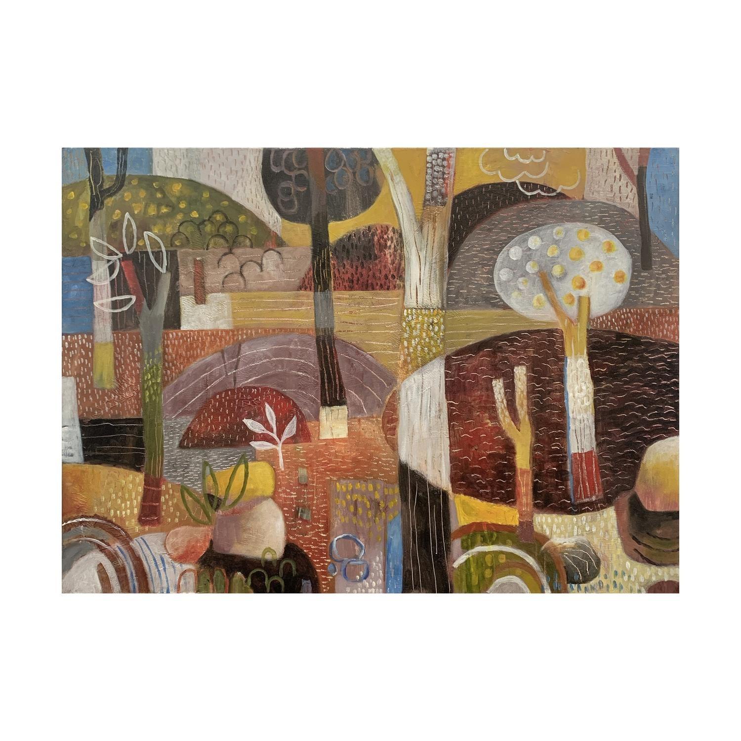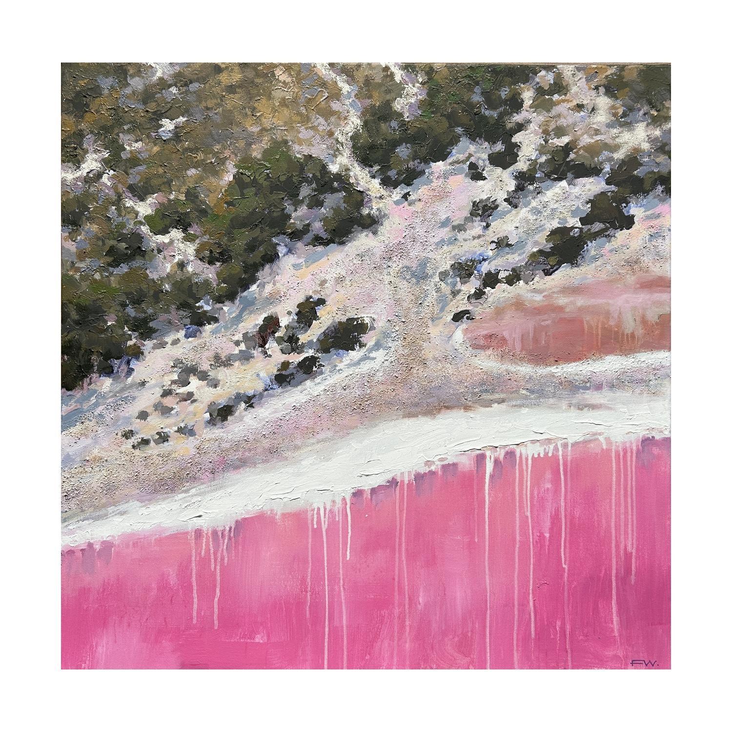acrlyic paint on canvas framed in raw timber frame. (framed)