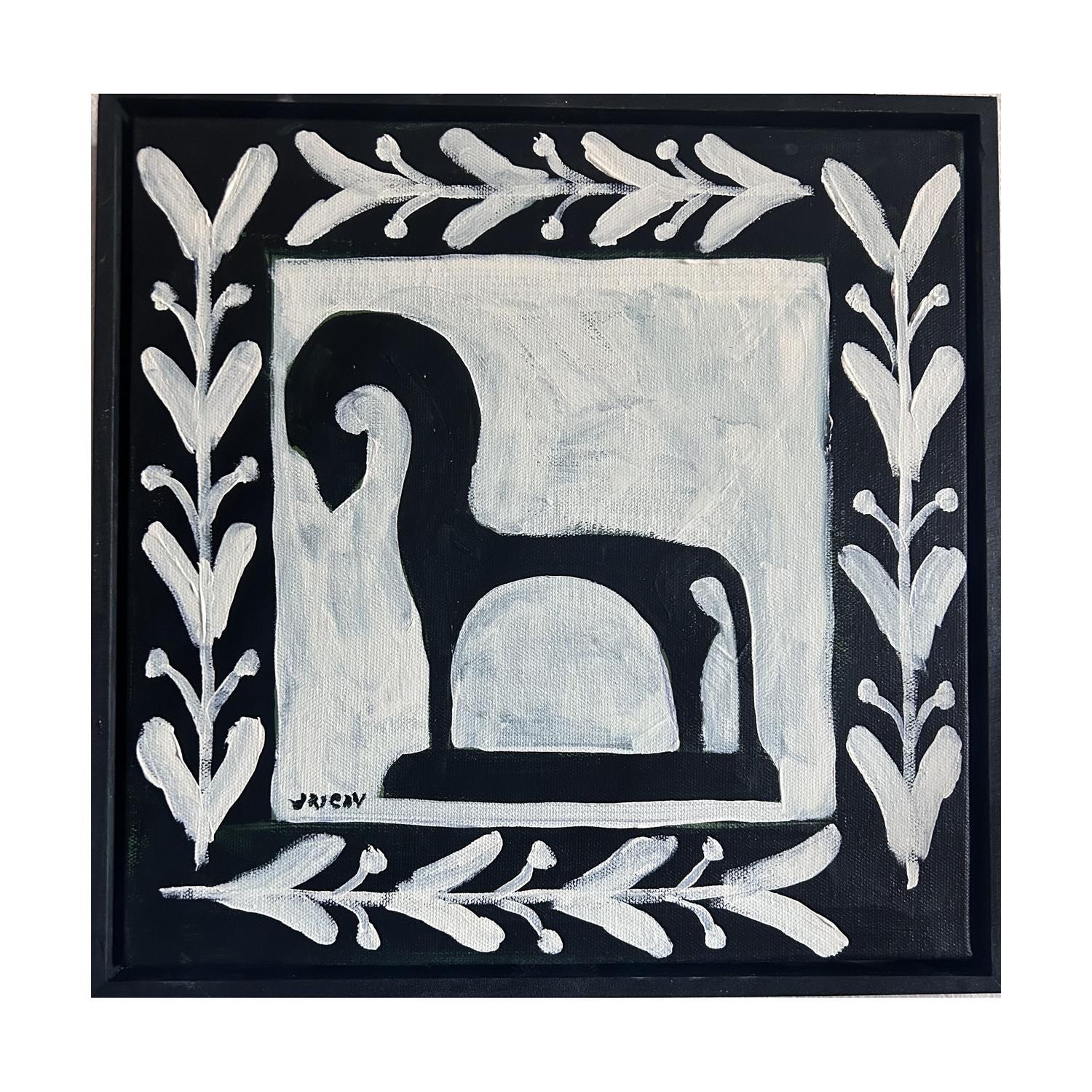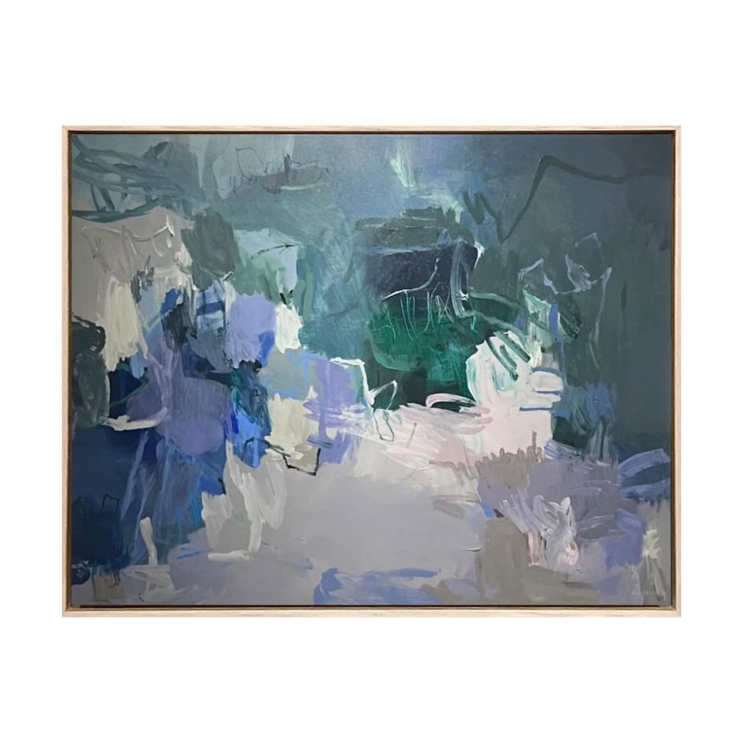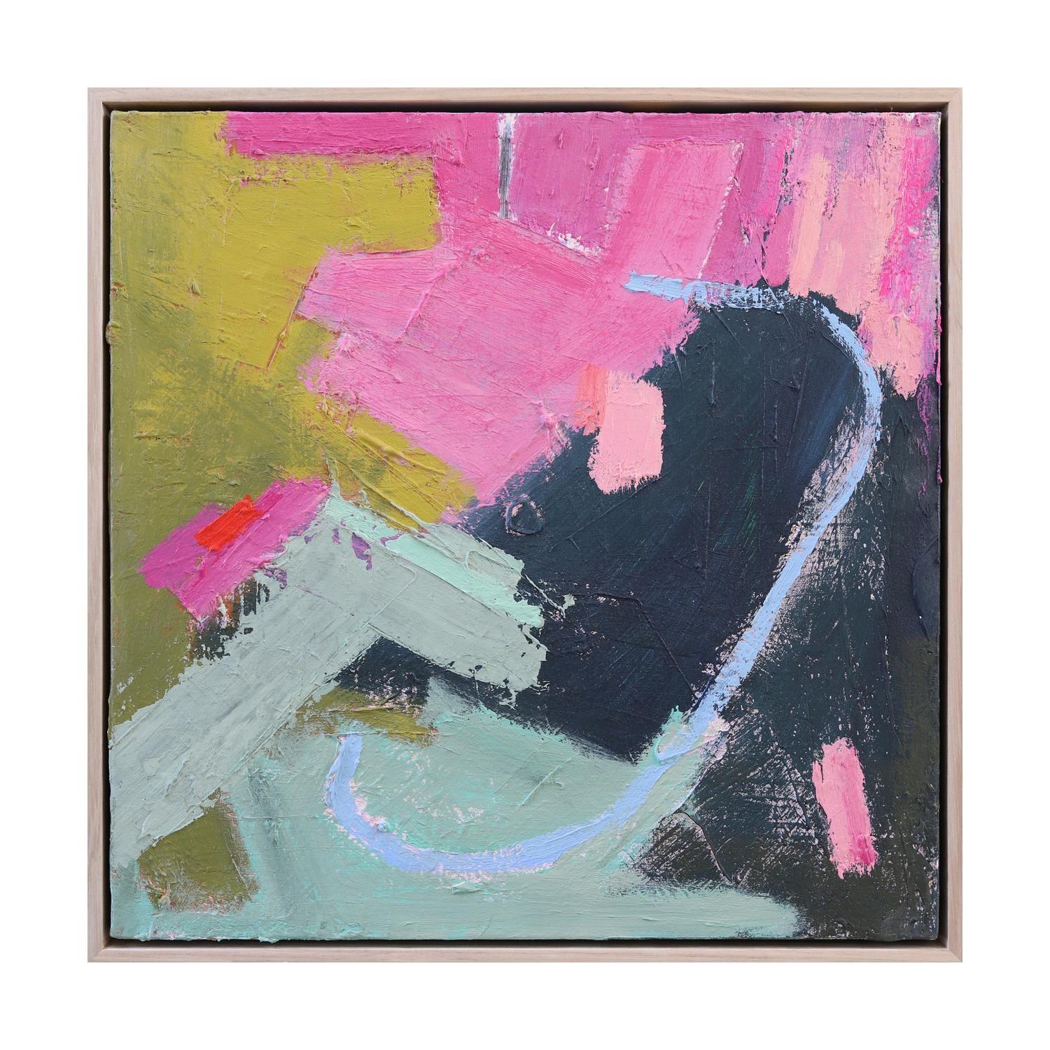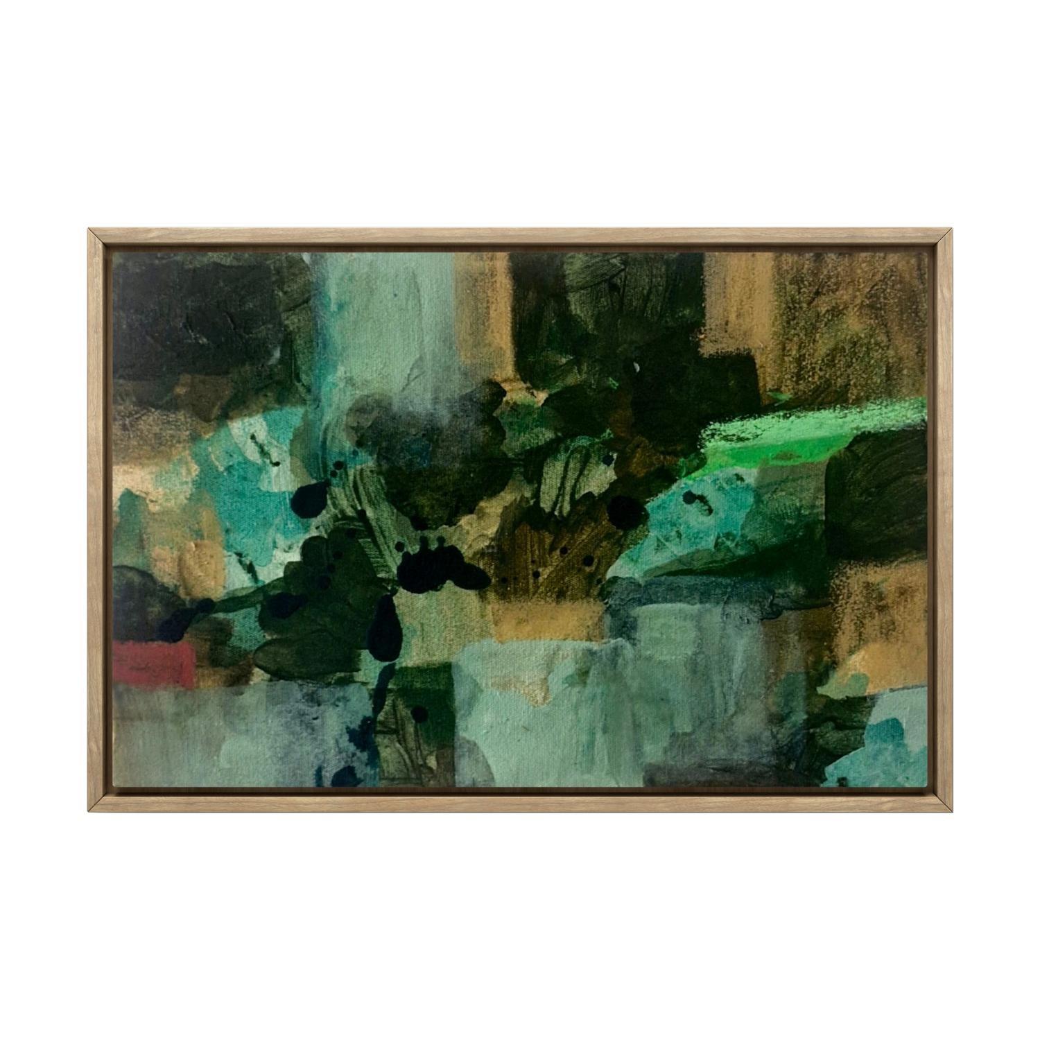 paint on canvas framed in black painted timber floating frame (framed)