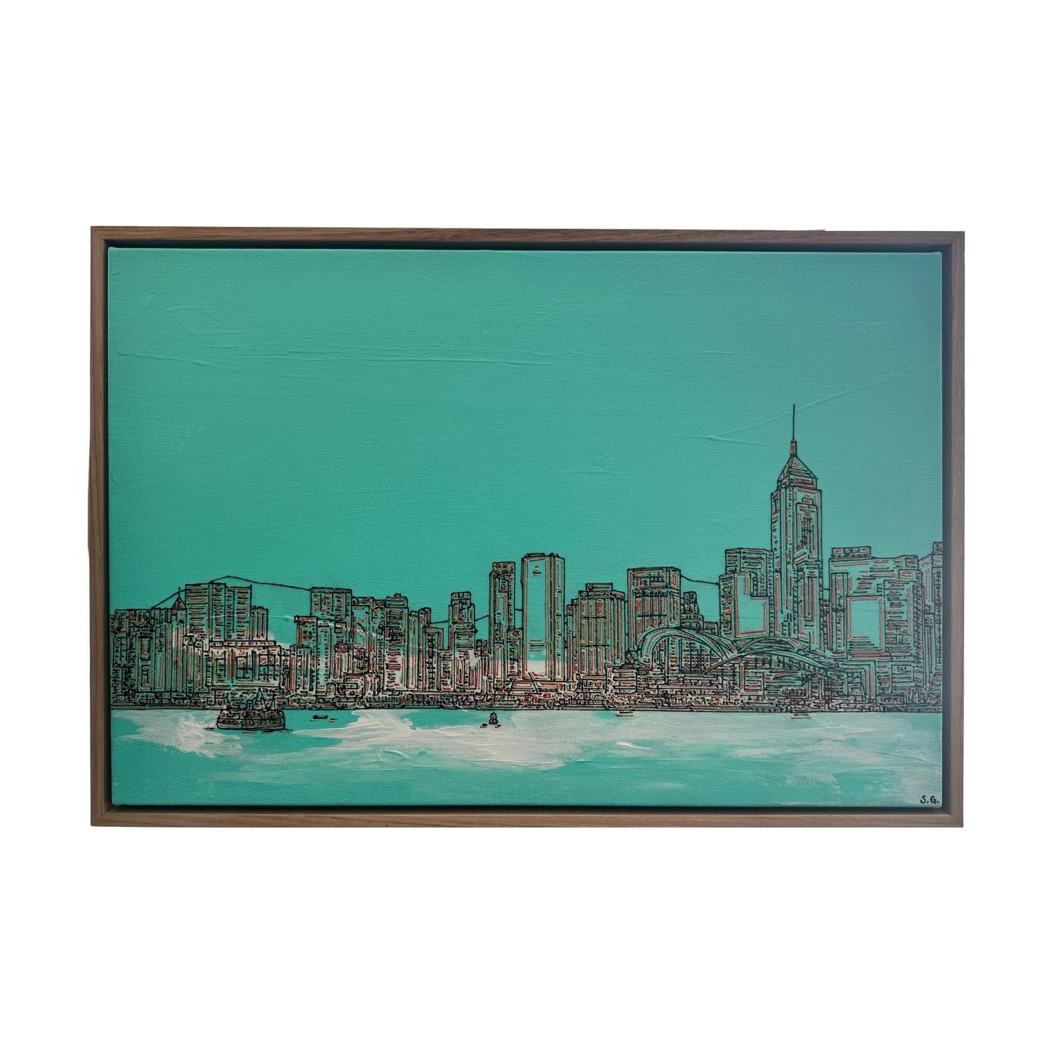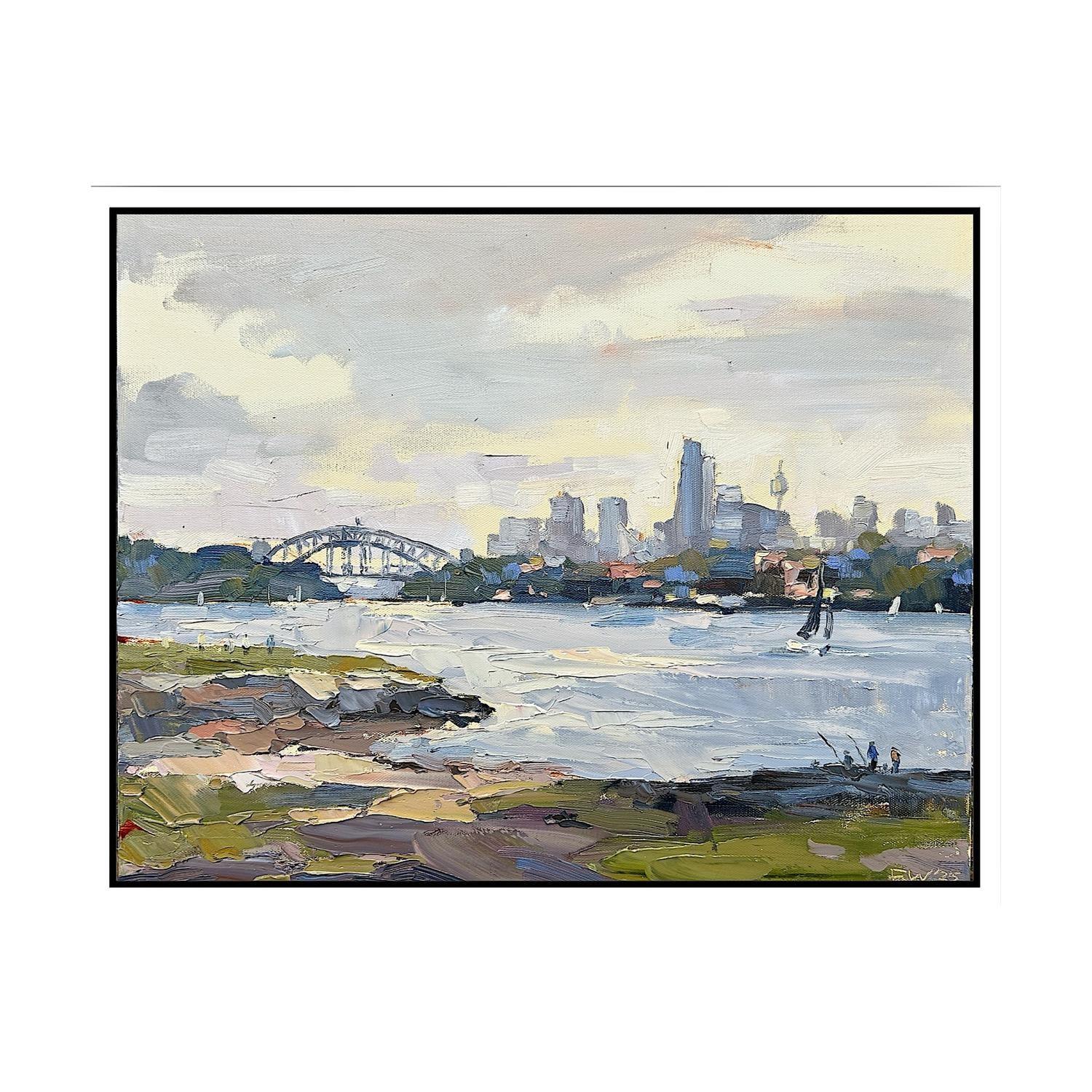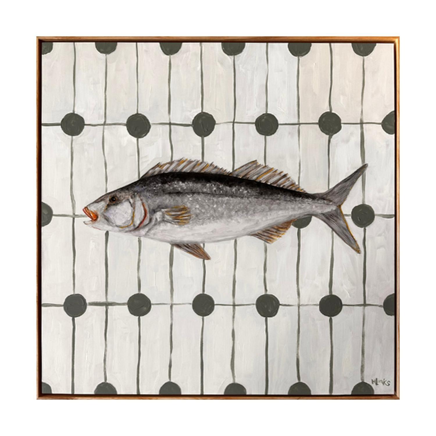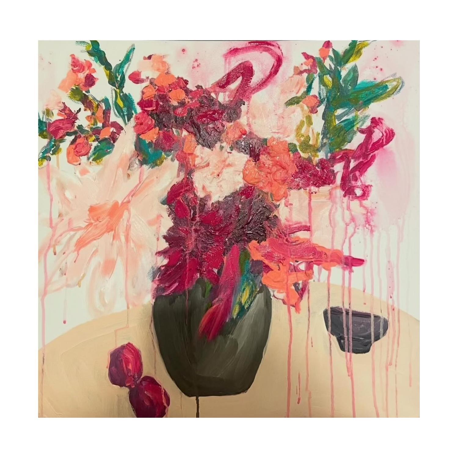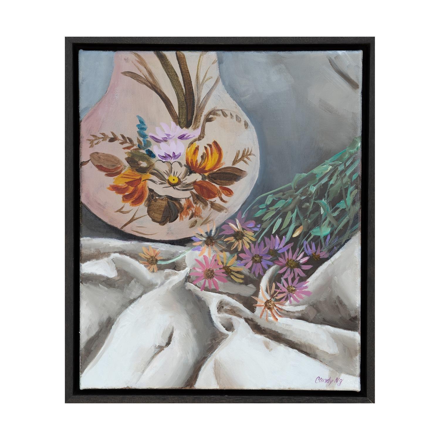 paint on canvas framed in black painted timber floating frame (framed)