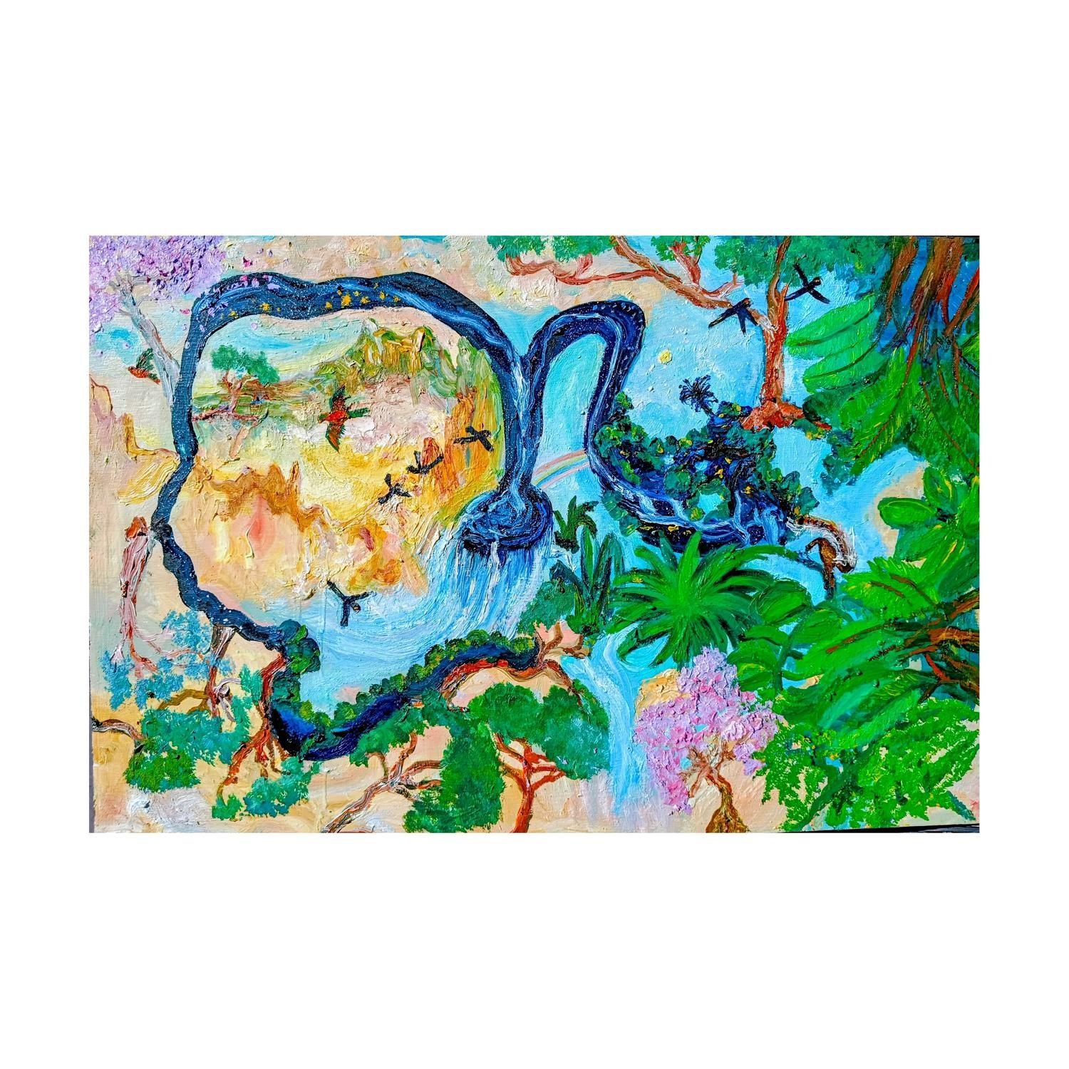 mixed media; oil pastels, modelling paste, acrylic and oil paints (framed)