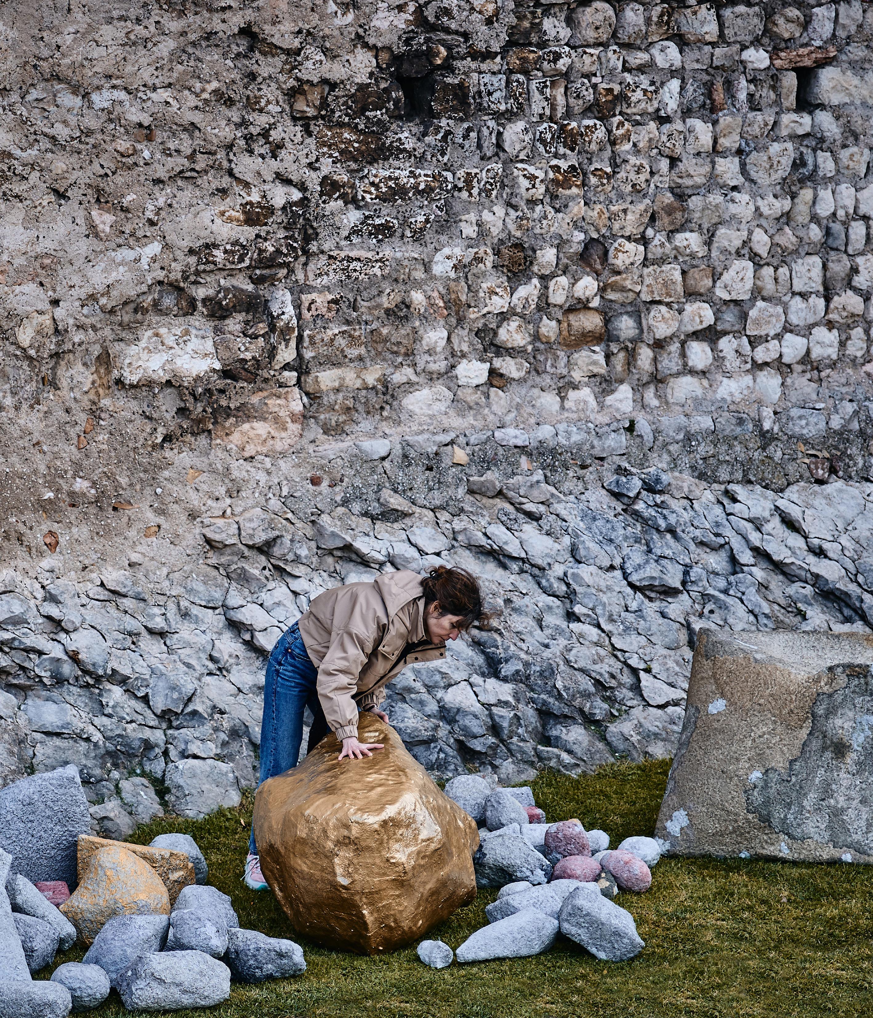 It was a rainy November day when I first found myself with Bahar Heidarzade in Malcesine’s Castello Scaligero. Only silence and the cold occupied its severe architecture. We started talking about Bahar’s work with stones, how to her they symbolised the weight we sometimes carry inside, often to the point that it becomes overbearing. It was then that we began to dream of a sky of stones that could be flown away, like a kite.