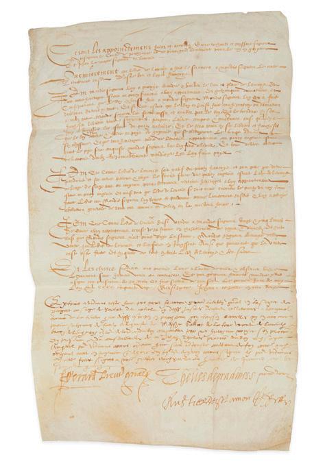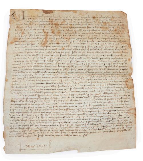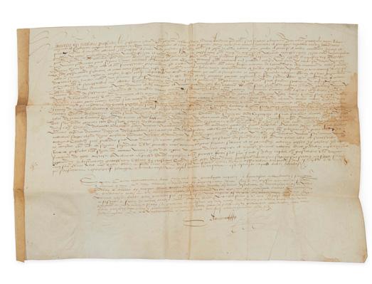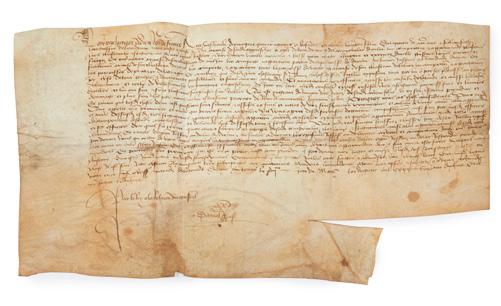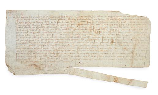 Reconnaissance en faveur du roi de France Charles VI par Helias de Riperia, seigneur de la Tour-Blanche, partie du comté d’Angoulême. France, La Tour Blanche. 1390. En latin, charte sur parchemin. France, La Tour Blanche, 1390.