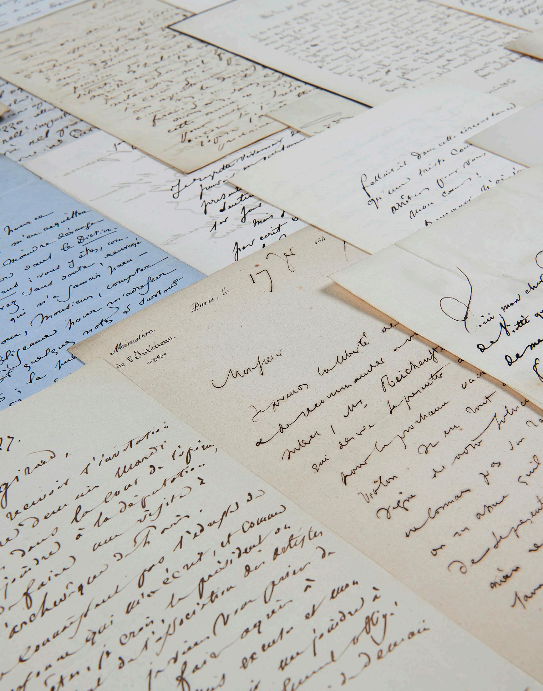 Ensemble de 9 lettres d’écrivains et d’artistes du XIXe siècle.