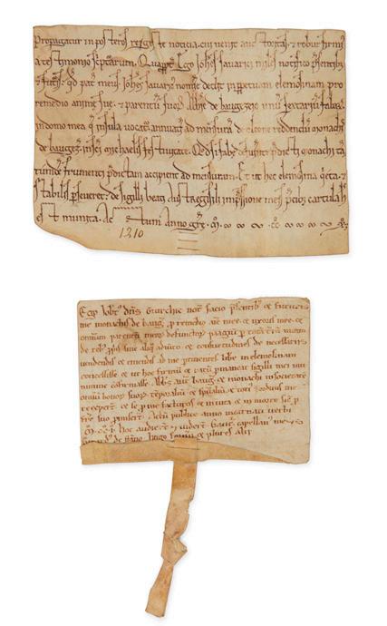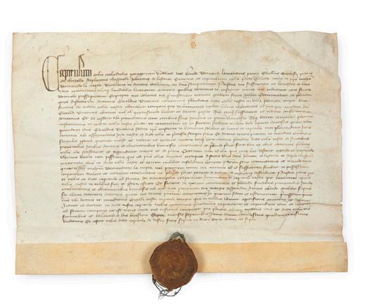 Avec : Lettres patentes de l’évêque de Périgueux France, Périgueux, acte de 1276. Ensemble de 2 documents en latin.