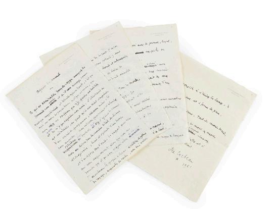 Manuscrit autographe signé intitulé « Agence du sommeil ». Paris. 1961. 4 p. in-4, encre sur papier. Manuscrit autographe signé de Jean Cocteau alliant métaphores et analogies dans une réflexion poétique autour de l’expérience du rêve et de la notion de voyage.