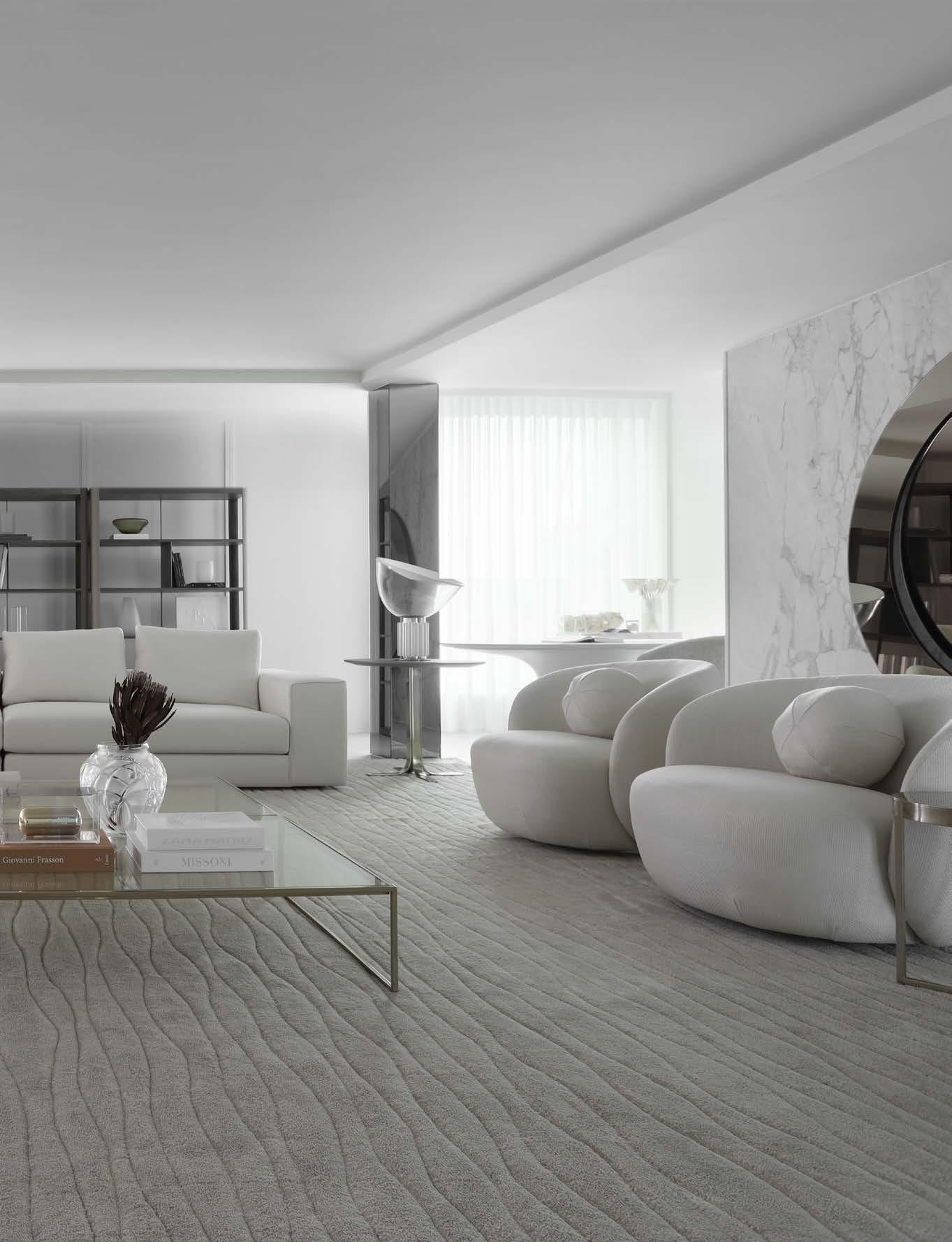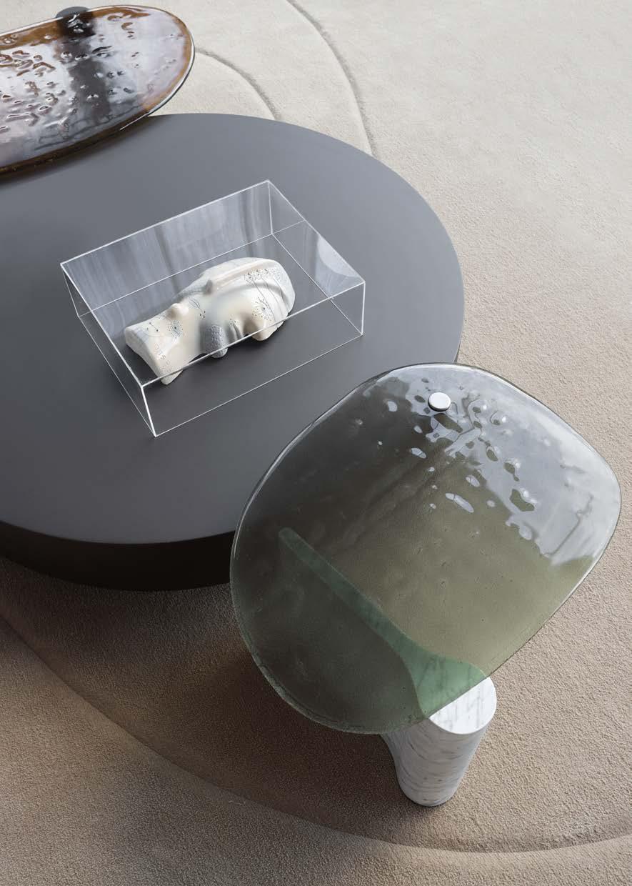 Poltrona POLUX, mesa lateral CROMA, módulo ORFEI, mesa de centro PANDIA, mesa de centro POIRET