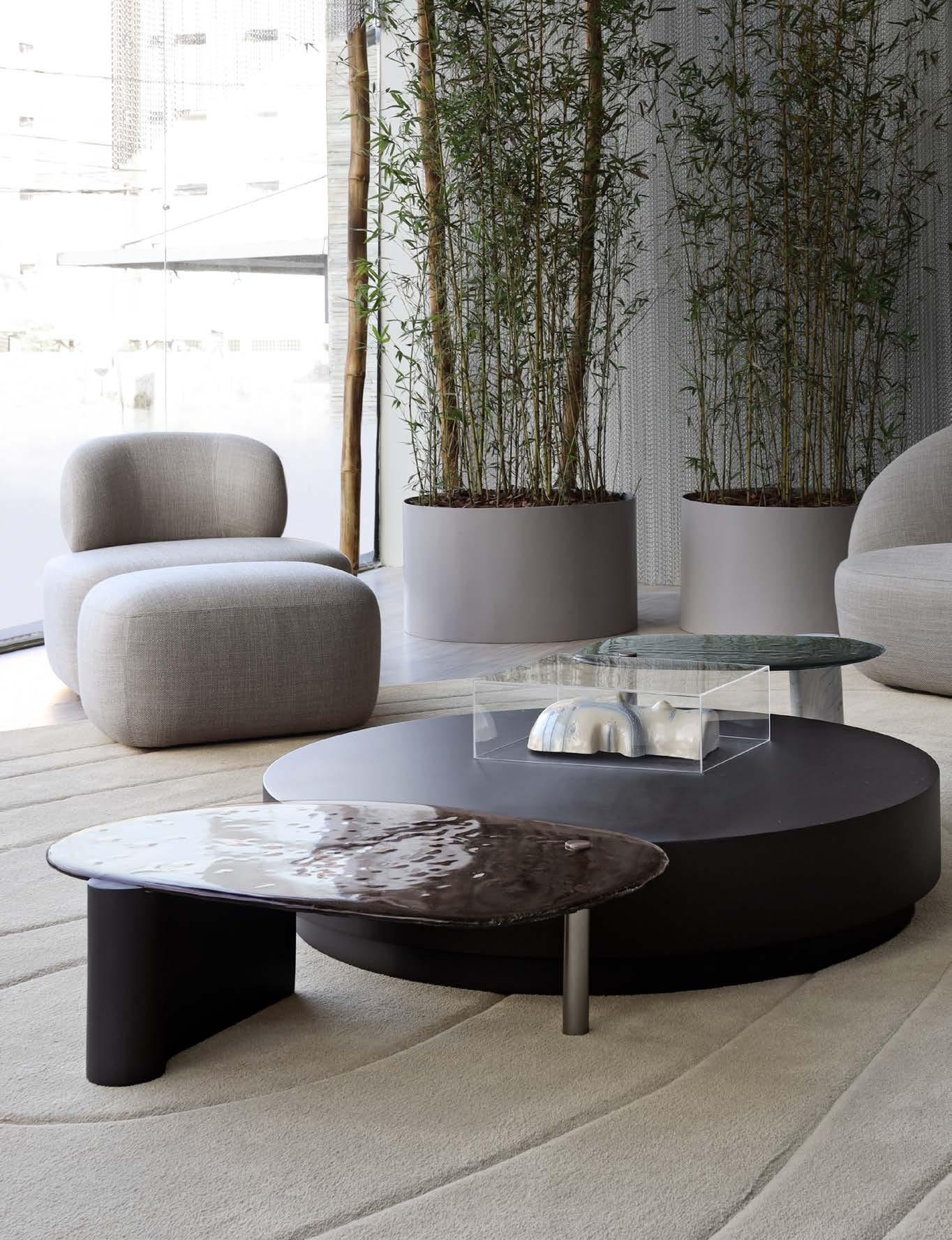 Mesa de centro BOYANG, mesa de centro PANDIA, mesa lateral BOYANG, estante APEX, poltrona KAN