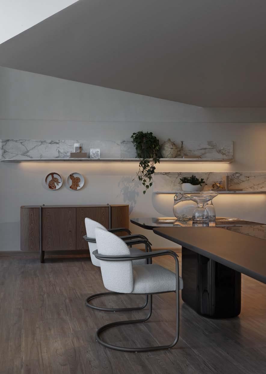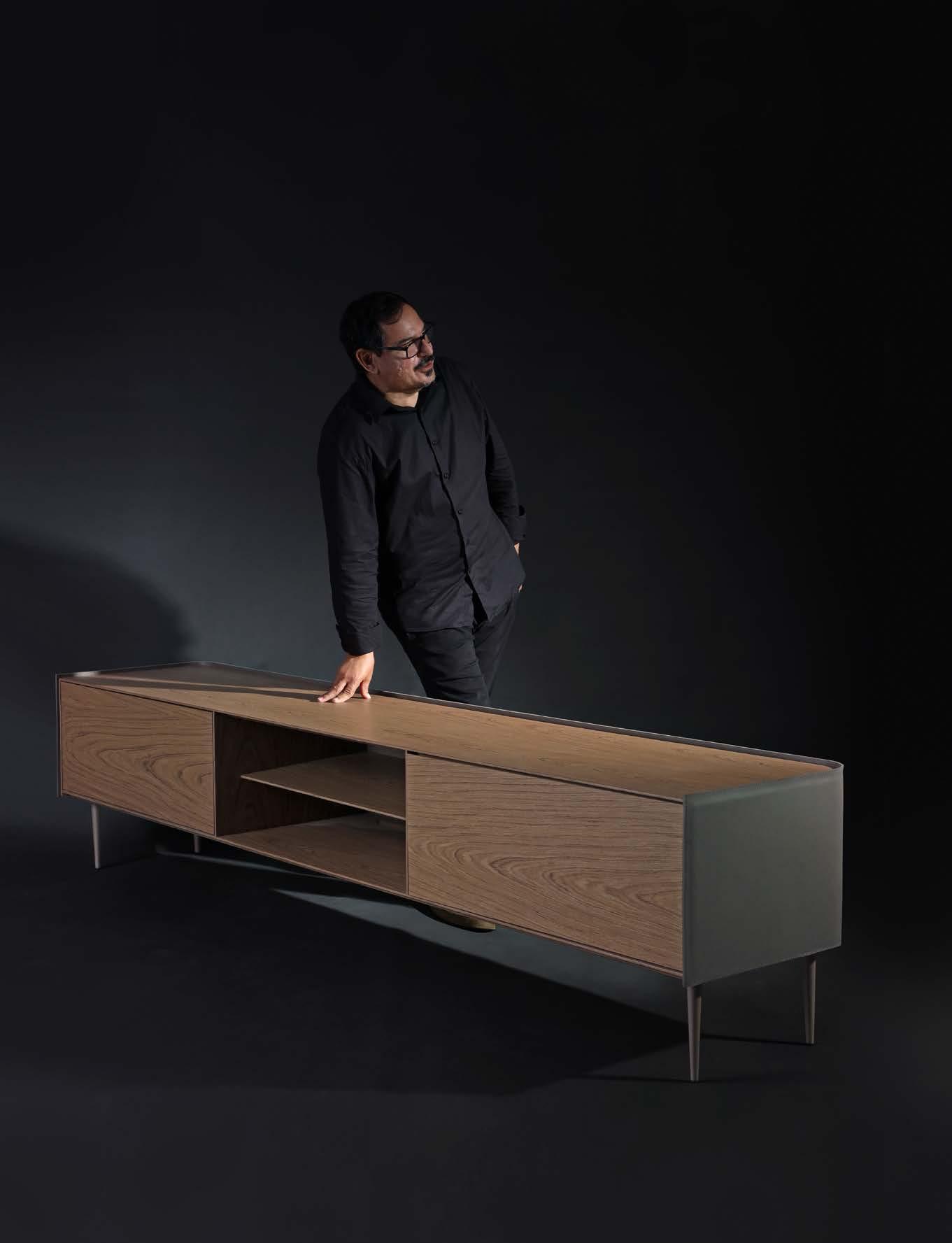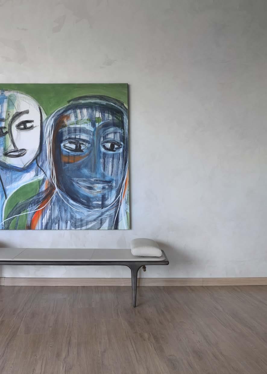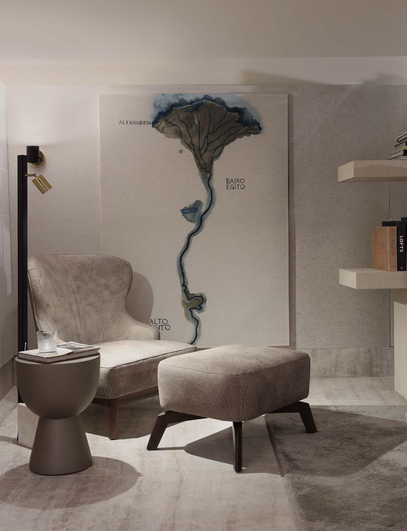 a distribuição. A segunda, por sua acentuada assimetria, apresentada com microtextura grafite. Para completar a composição, toda a expressividade da moldura Callet, que surge entre os painéis de pedra granítica. Entusiasta assumida da marca, para a arquiteta, a Artefacto é uma das principais expoentes, nacional e internacional, na manufatura de um mobiliário de característica atemporal, com design apurado e estética expressiva. “Sou simplesmente apaixonada pela logística e evolução da empresa. E ainda pelas tendências apresentadas em cada um de seus lançamentos anuais”, ressalta.