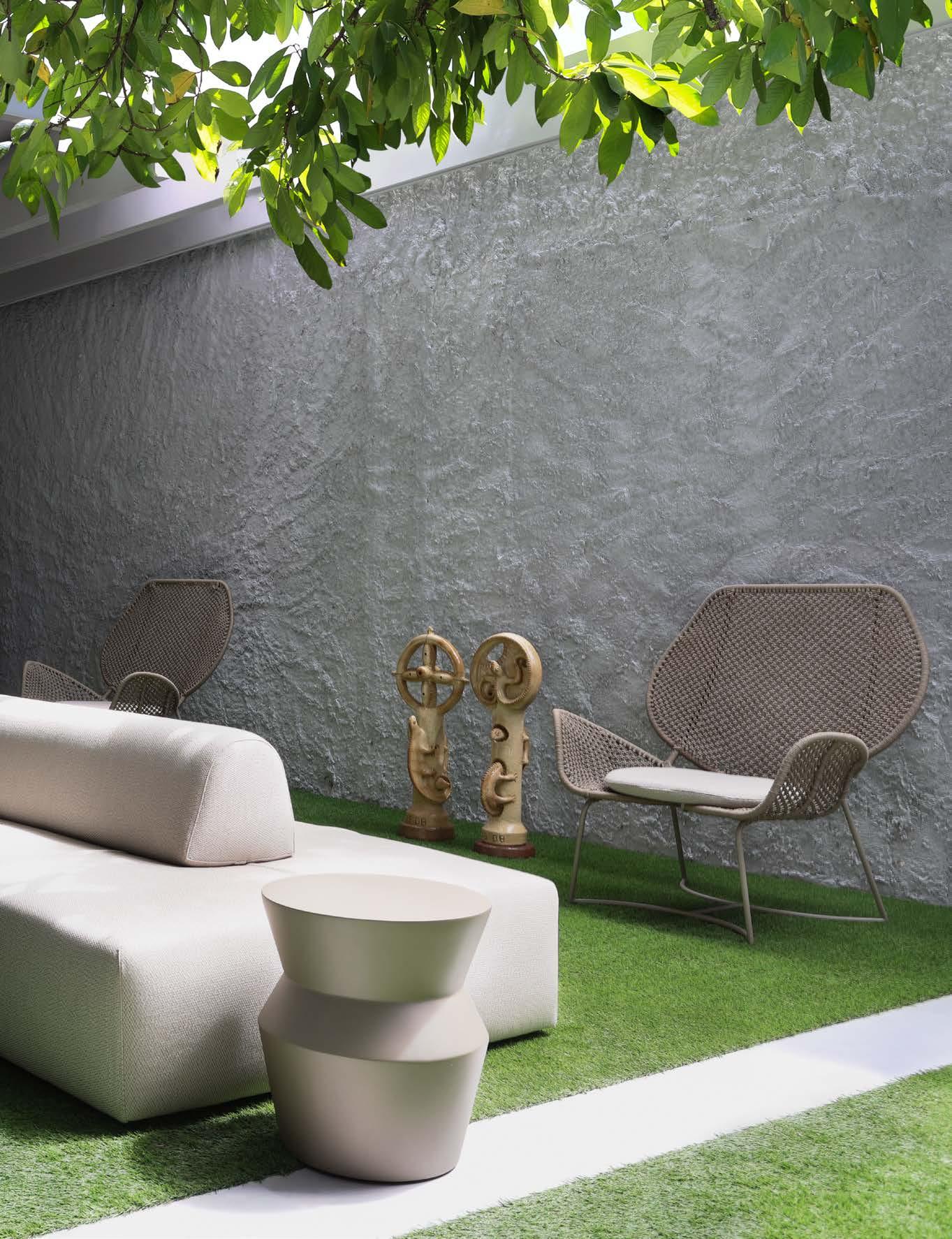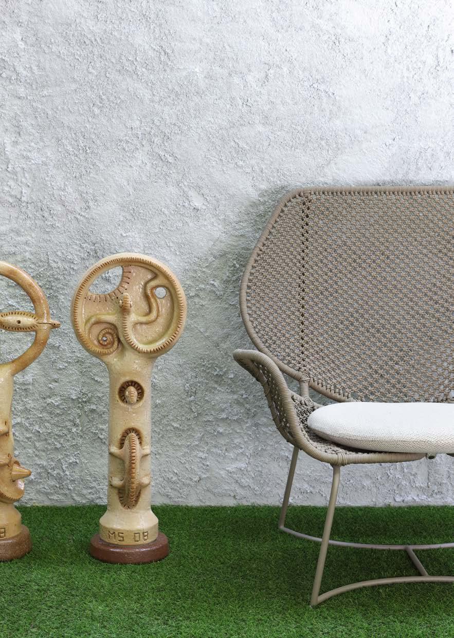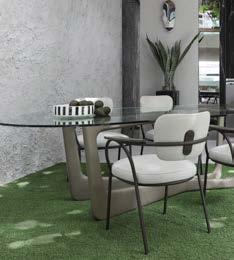 a mesa de centro Nolay, a poltrona Sin, em versão outdoor, o banco Arugam, as mesas de jantar Tibau e a lateral Stewart II, além da cadeira Nave, do banco Kalao e, arrematando a composição, a poltrona Igarapé. Pela sua exclusividade e sofisticação, para o arquiteto, o mobiliário Artefacto pode ser reconhecido logo ao primeiro olhar. “A expertise do design, a excelência da execução feita à mão e a multiplicidade de matérias-primas são características que saltam aos olhos em cada móvel”, afirma ele, que ressalta ainda a qualidade do atendimento. “O suporte pósvendas é atencioso e preciso”.
