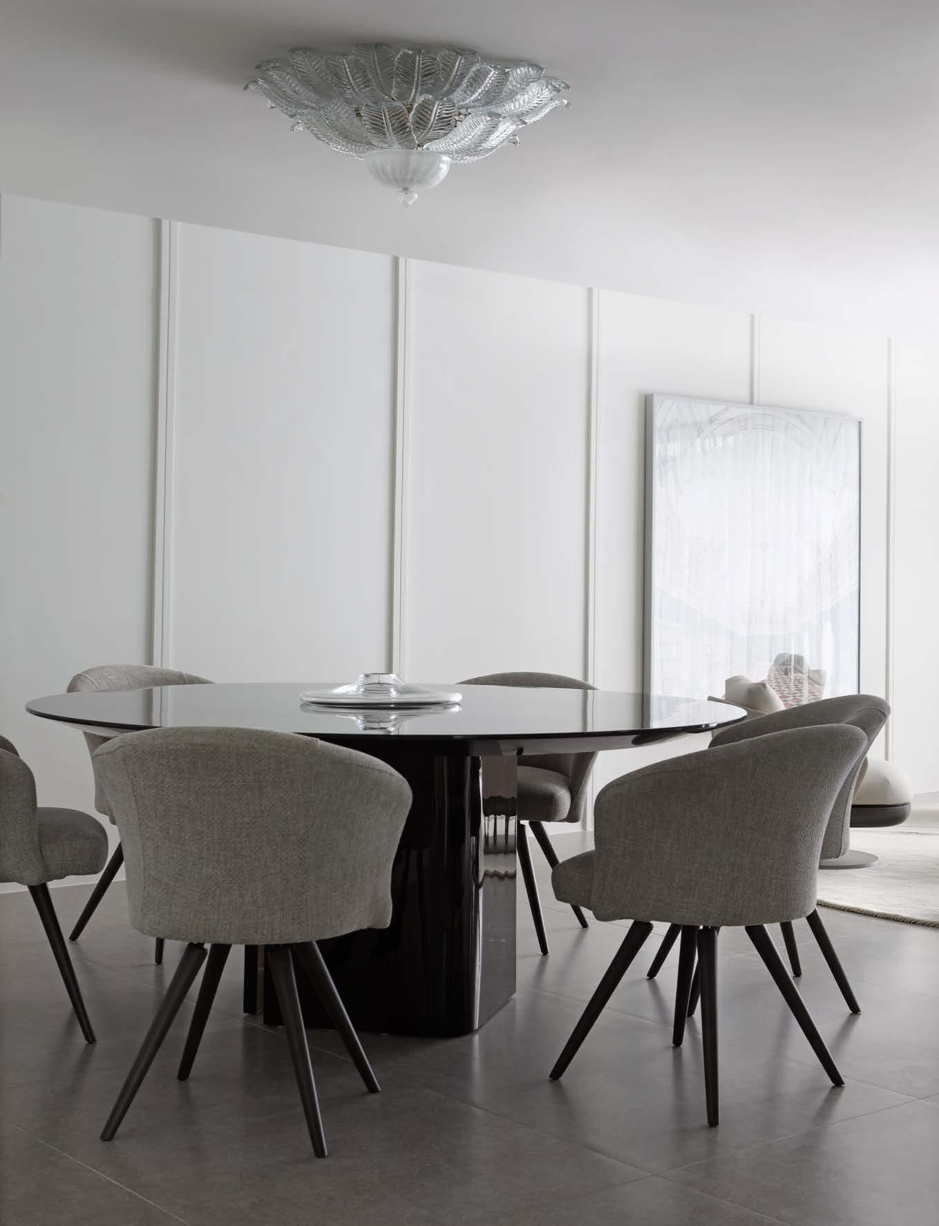 Mesa de centro NOLAY, poltrona SIN, coluna de jantar TIBAU, cadeira NAVE