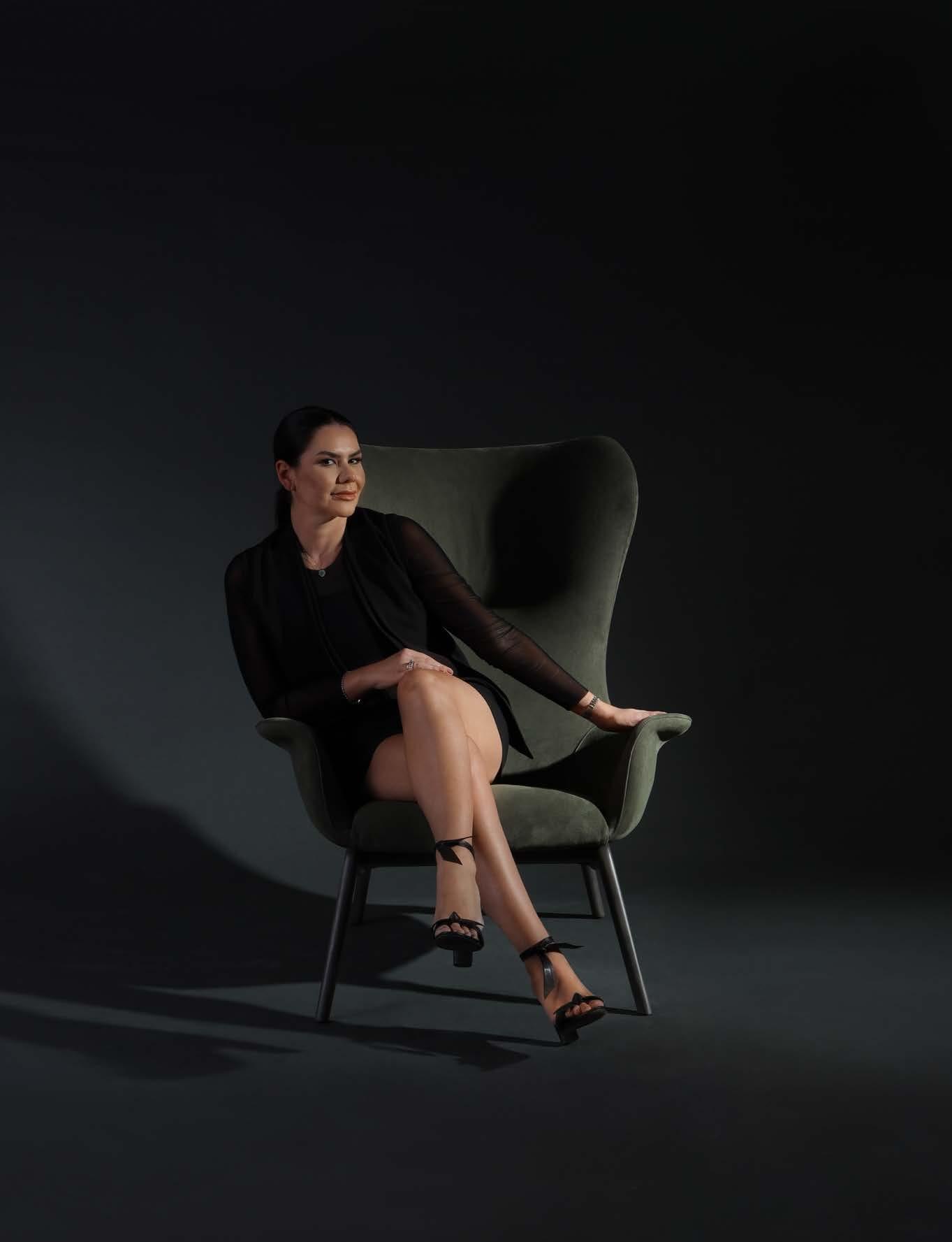 Poltrona NYX, mesa lateral LOUISE, sofá ILLI, mesa lateral NUSA, caixa bar PIETRA, mesa de centro ORO II