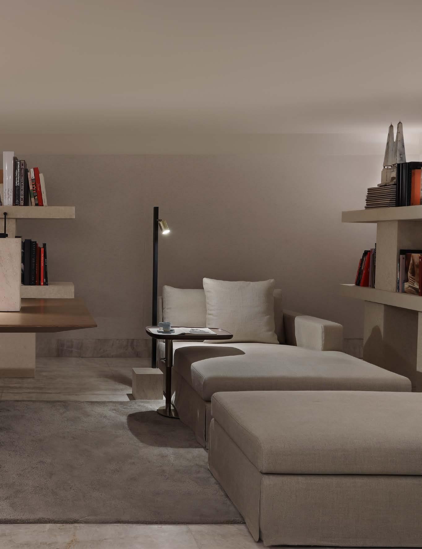ainda incorporar elementos naturais”, resume Sandra, que, para a mostra deste ano, projetou uma sala de estar de 60m², que recebeu módulos Opus, a mesa de centro Pandia e duas Boyang. E ainda a poltrona e o puff Mentha, junto com a estante Apex. Para a arquiteta, a vida é um grande ciclo, um caminho cheio de curvas, uma condição que ela pretendeu enfatizar em seu espaço. Seja por meio do mobiliário ou dos acessórios. “Vejo a Artefacto como uma empresa em permanente evolução. Um marca global que procura estar sempre à frente, por meio da busca permanente pela qualidade”, sintetiza ela.