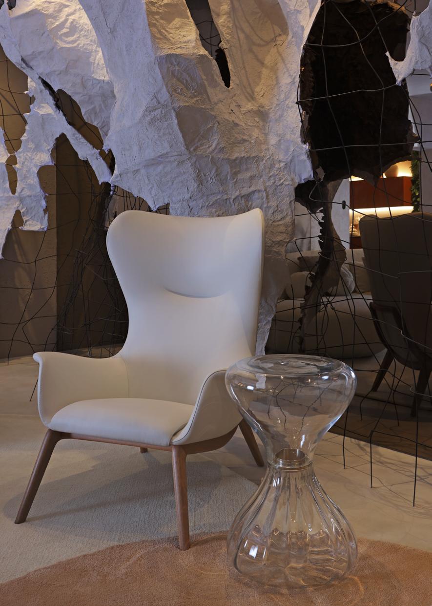 Poltrona MAROS, mesa lateral NUSA, mesa componível KALUH