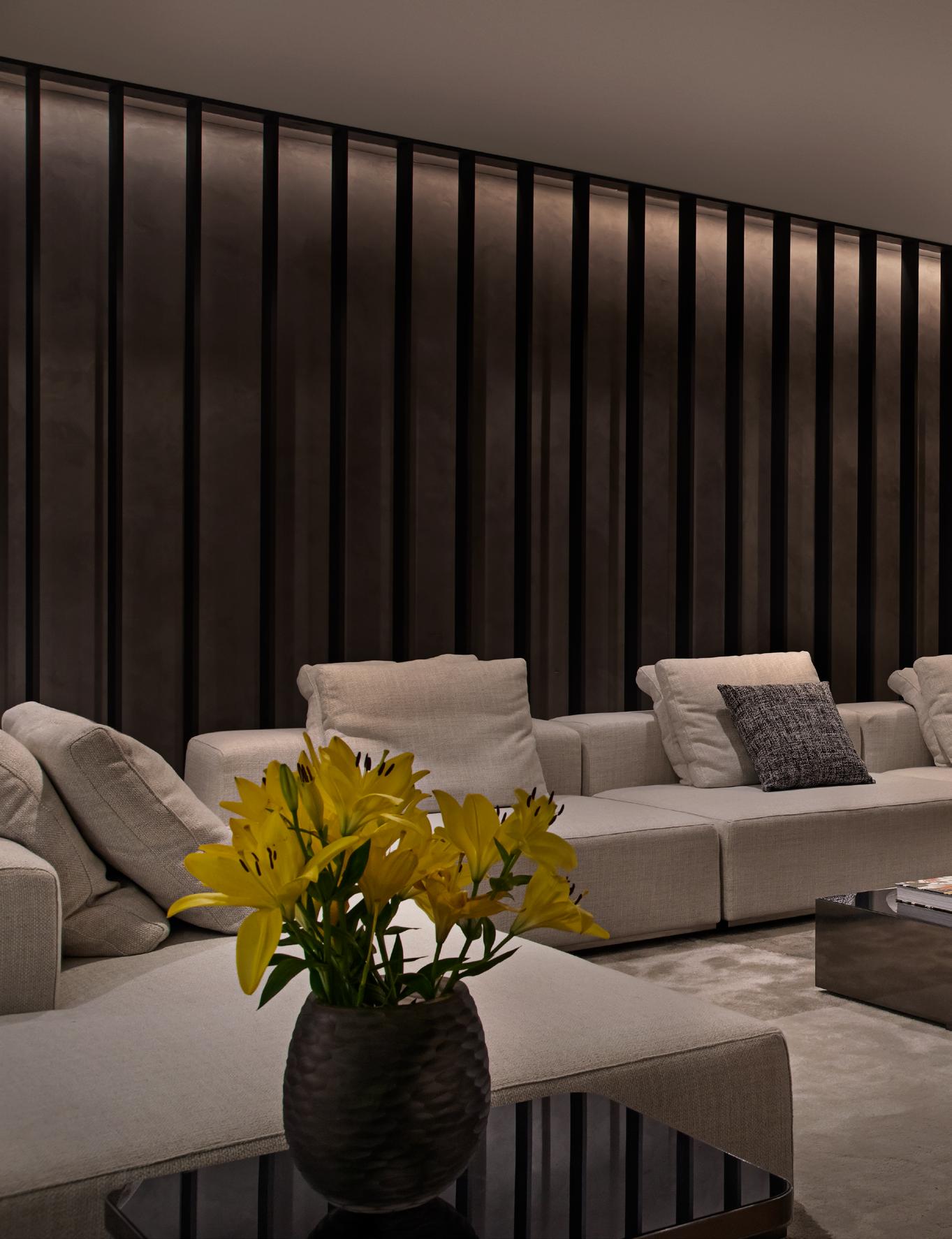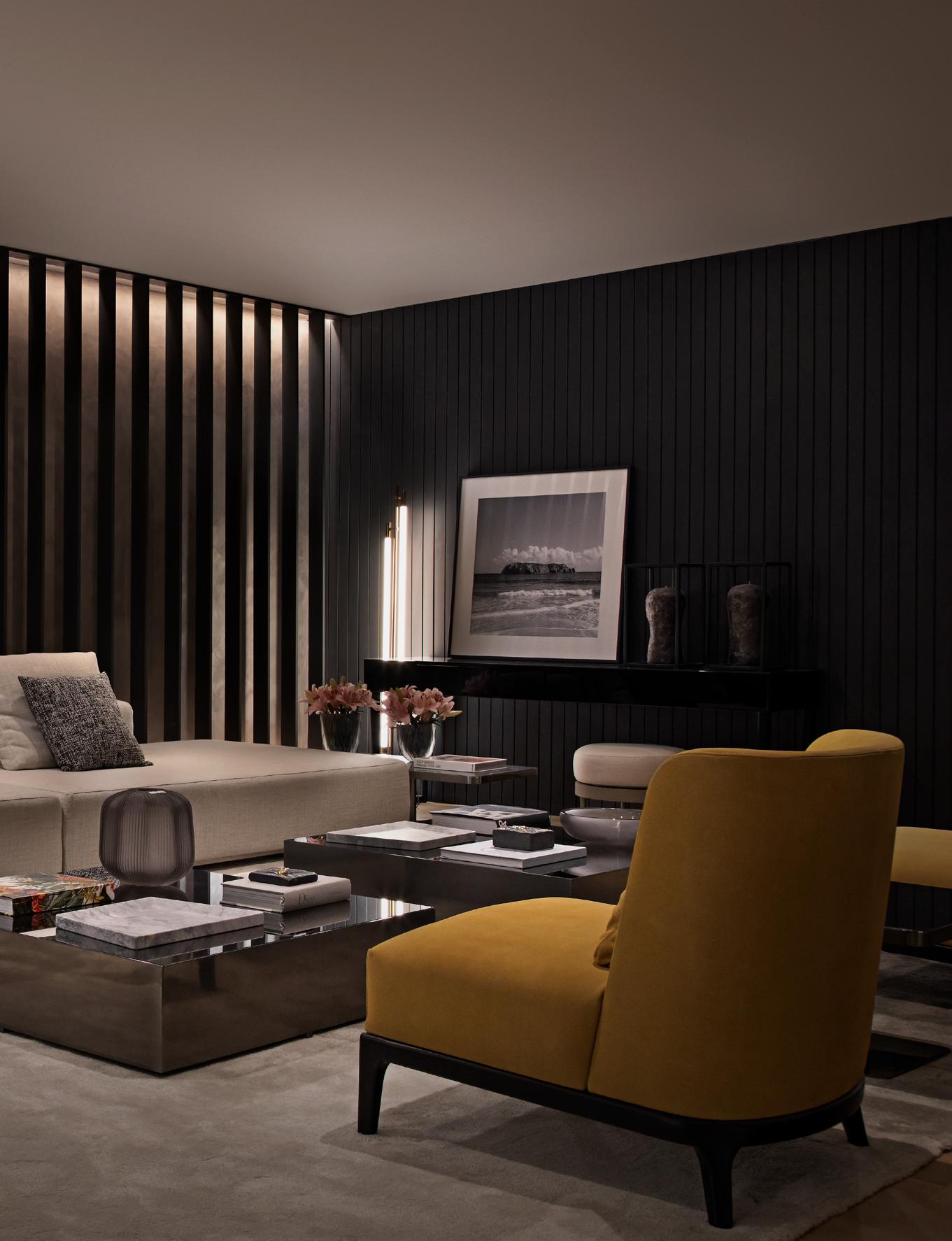 Desde suas primeiras lembranças de infância até a vida adulta, o arquiteto Alexandre Cardim sempre teve uma convivência familiar bastante intensa, com todos reunidos aos finais de semana e datas comemorativas. Assim, ao receber o convite para participar da Mostra 2023, que tem como tema a Felicidade, a ideia de fazer do seu ambiente uma representação de seu núcleo familiar veio de imediato. Projetei um ambiente de estar de 105 m², com gourmet integrado, pensado em todos os seus detalhes para receber e realizar prolongados encontros”, conta ele. Como ponto de partida, a preocupação em explorar a amplitude do ambiente, abolindo barreiras fixas. “A setorização acontece apenas em função do mobiliário”, adianta ele, citando o sofá Argand, com seu formato curvo, que