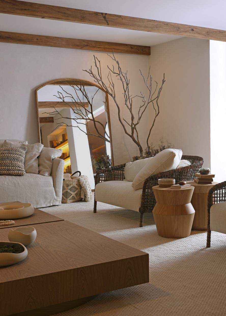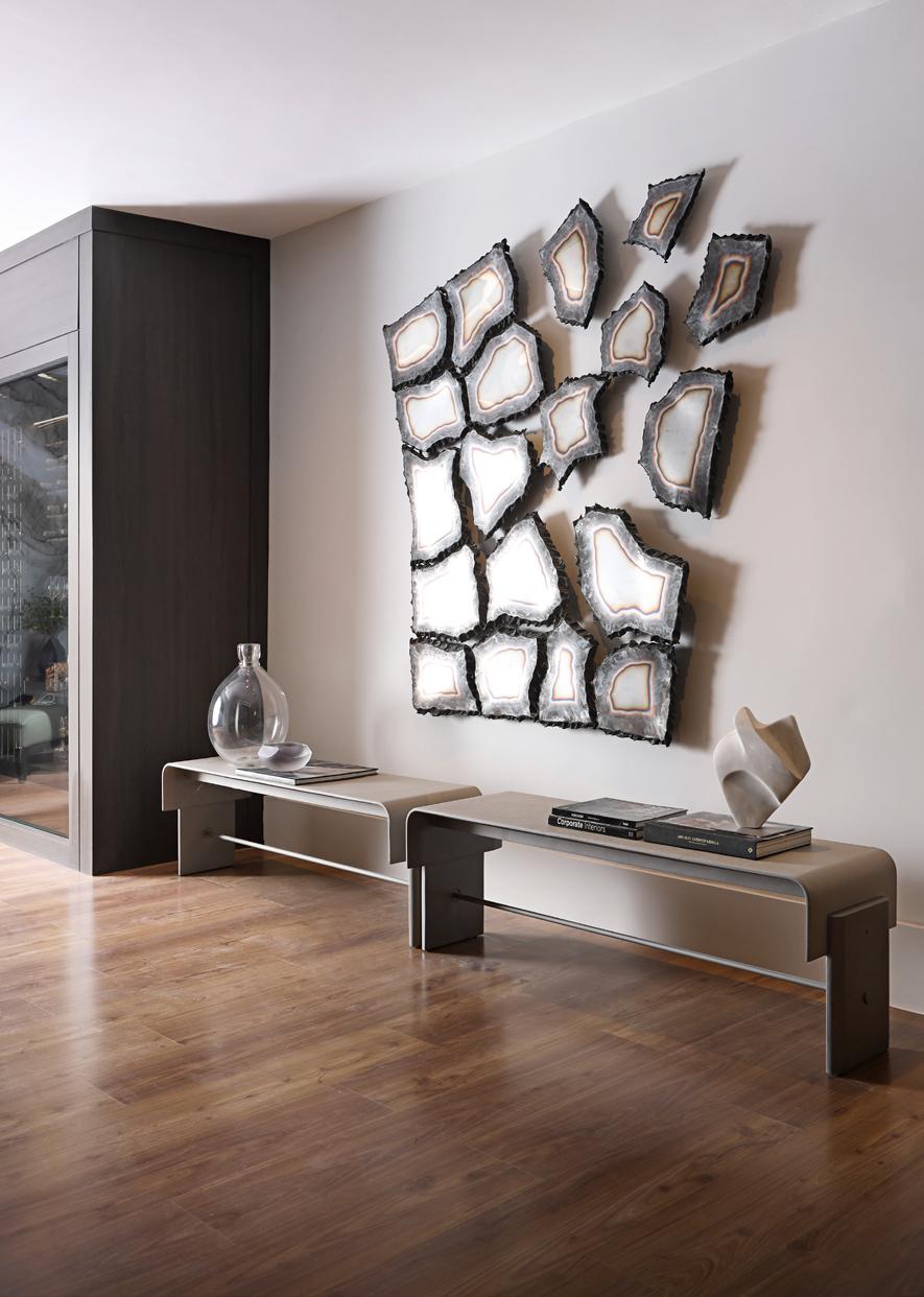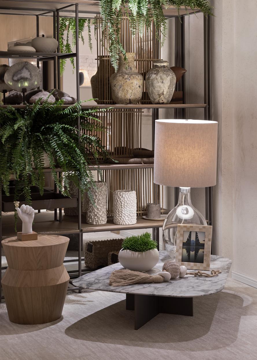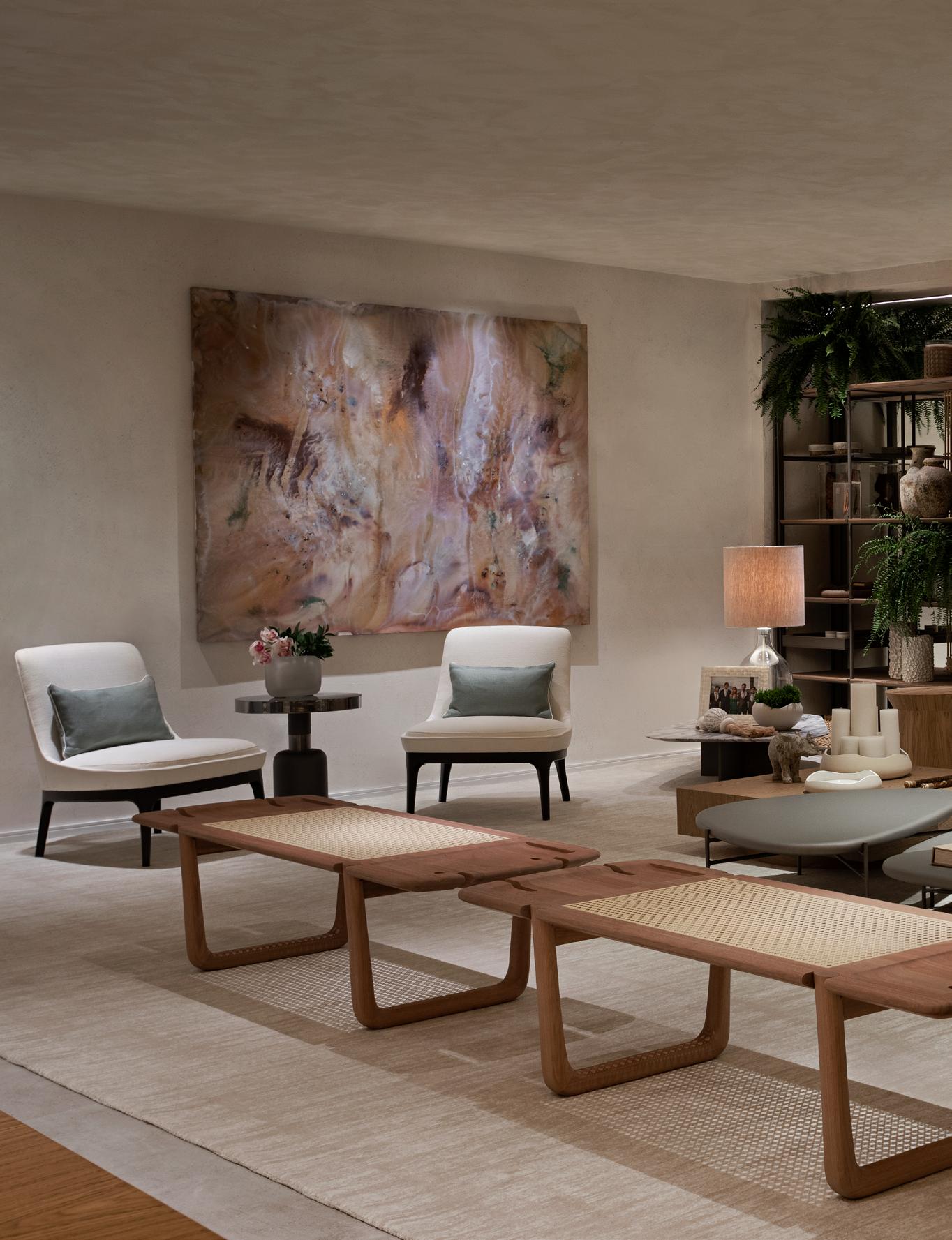 Banco VIVIKA, moldura ELIE, poltrona INDIANA, mesa lateral GINZA, mesa de centro LENA, mesa lateral LOUISE