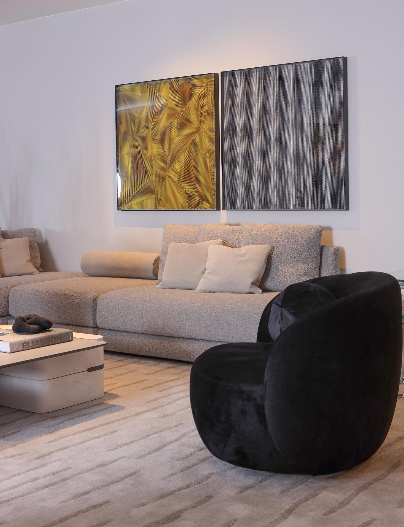 um resultado atemporal, sem exageros”, afirma o designer. “Acredito que a criatividade possa sim ser um fator transformador na vida das pessoas. Todos nós podemos ter um lar que represente a nossa busca pela felicidade.” Nesta edição, seu ambiente é o mais amplo da mostra, com 190 m². “Já ocupo este espaço há dois anos e propor ambientes distintos a cada edição já é, em si, um super exercício”, considera Jorge, que, para denotar uma significativa mudança, alterou o fluxo de circulação no local. “O visitante estará no centro do projeto, podendo contemplá-lo num giro de 360°”, adianta ele, que entre os produtos Artefacto em exposição, situa a moldura AKA, no hall de entrada, como principal atração. “Sem dúvida é a peça mais instagramável”. [VIDEO]