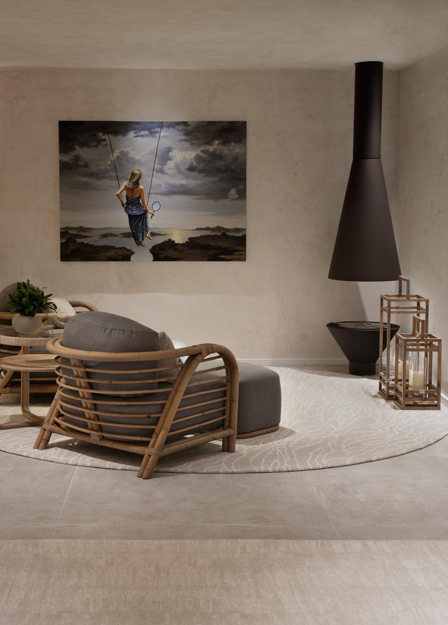 “Minha intenção foi demonstrar para o público que a maior fonte inspiradora de todas as formas arquitetônicas, assim como de todo design de mobiliário, se encontra na própria natureza. No caso, nos elementos rochosos que traduzem e inspiram o mobiliário Artefacto que escolhi para o ambiente” explica ele. Embora acredite que a felicidade não possa ser explicada - “Ela é furtiva, vivida. Alcançável ou não, dependendo dos valores que cada um tem