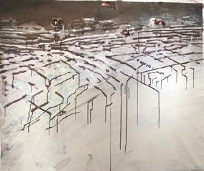 “Um espaço francamente conceitual”, assim o arquiteto Rogério Antunes define sua proposta para a Mostra Artefacto 2023, que envolve a sobreposição de diversos vergalhões de ferro, tendo como pano de fundo um espelho bronze, capaz de sugerir amplitude e propiciar a reflexão de múltiplos formatos.