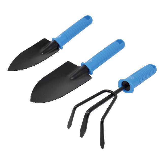 • El Set de Herramientas para el cuidado del jardín incluye: - Pala Excavadora - Palita para Transplante - Rastrillo de Mano • Su asa plástica está provista con agujeros para fácil almacenamiento Usos • Ideal para transplantar plantones y plantas ornamentales • Preparar el suelo para cultivos G1004 GARDENING TOOLS SET | HERRAMIENTAS PARA JARDÍN 3 pcs/pzas Weight GW: 19.5 kg - Weight NW: 18 kg - Volume: 0.3 m3 - Master Box: 24 sets