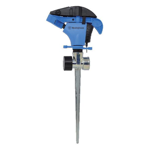 • Aspersor pulsante de 1 vía • Punta de metal de 12 pulgadas • Opciones de cobertura ajustables • Se adapta a roscas de manguera de jardín estándar