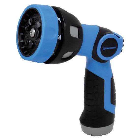 • Heavy duty construction • 9 Function, shower, angle, flat, flood, mist, jet, center, fan, cone • Ergonomic designed handle, the anti-slip handle with soft rubber coating makes the spray nozzle comfortable when gripping, the rear trigger make it easier to operate.