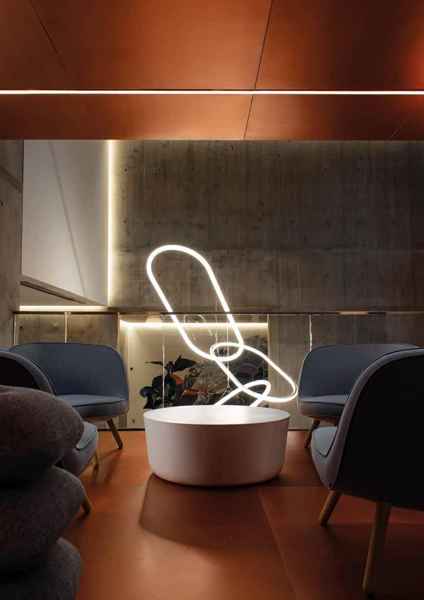 It is a minimal presence that conceals ultra-sophisticated optoelectronic and patented mechanical innovation as well as ground-breaking control. The system can be controlled using the Artemide App to create freedom both in geometric design and in the definition of dynamic performance levels, which can be programmed or modified in real time. BIG designed also a new font, an alphabet that can be used to write and express one’s thoughts, to establish an identity and to guide visitors through a space using light. Alphabet of Light collection can help give shape to a wide range of locations and public spaces, from hospitality and offices to educational and retail, as well as being peerfect for private residential application.