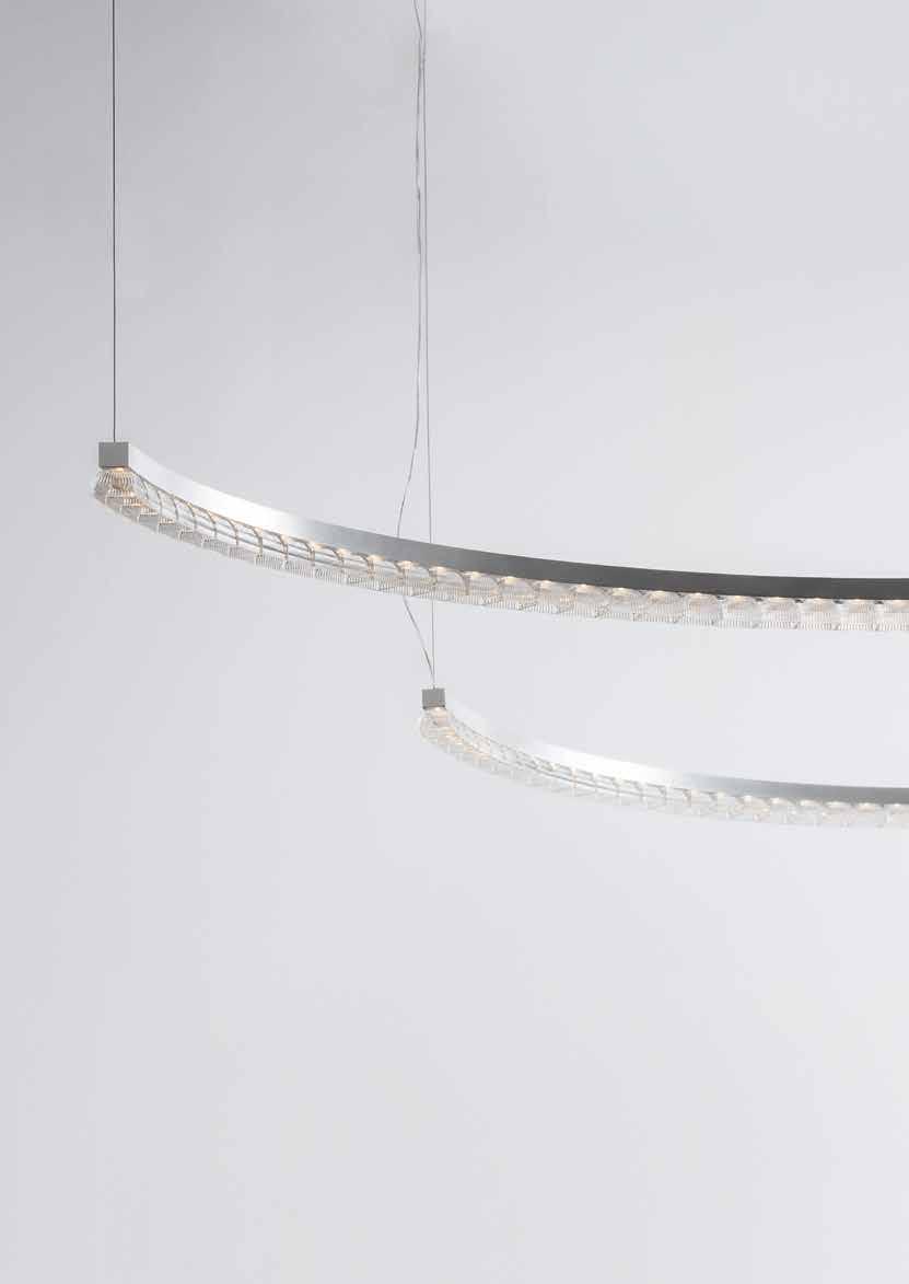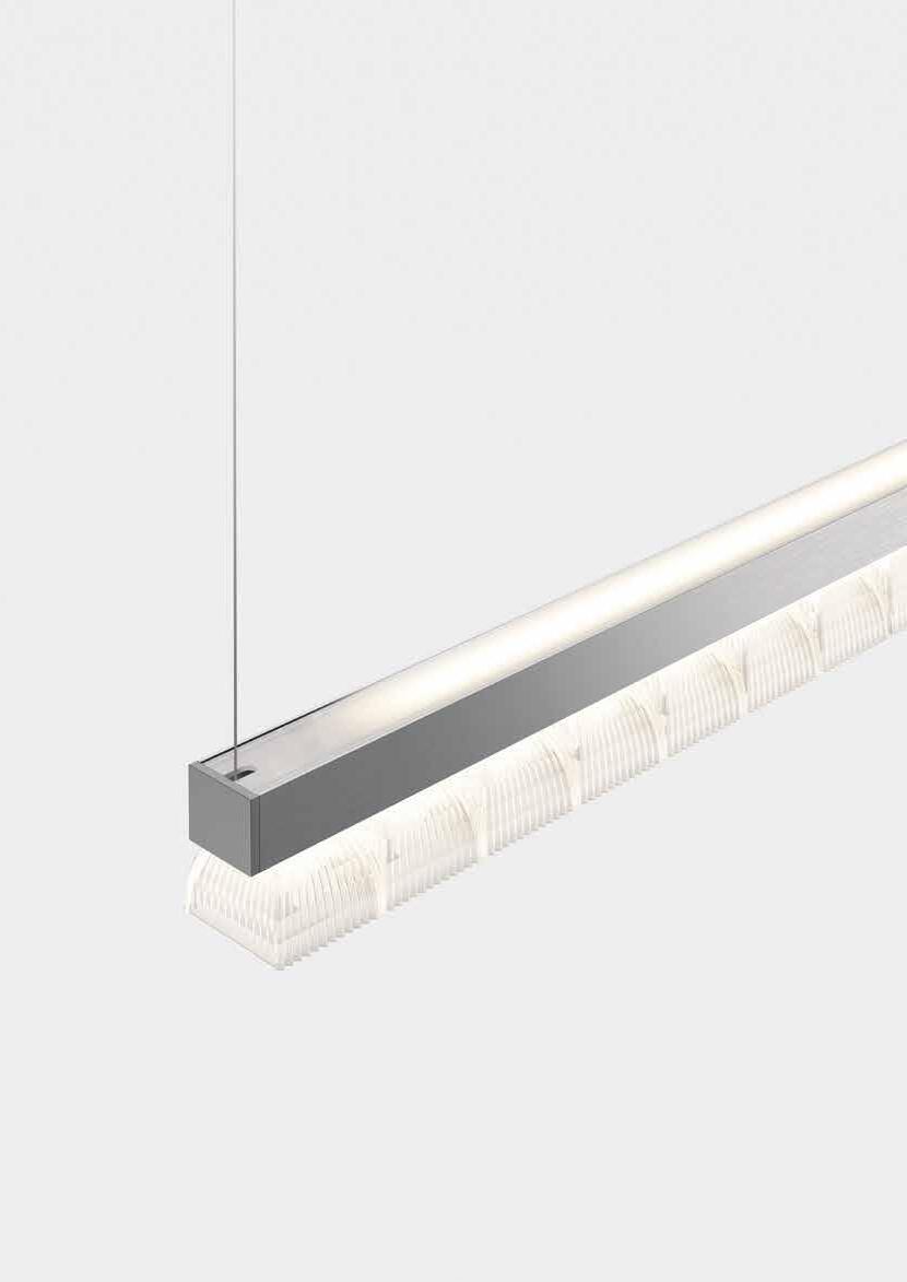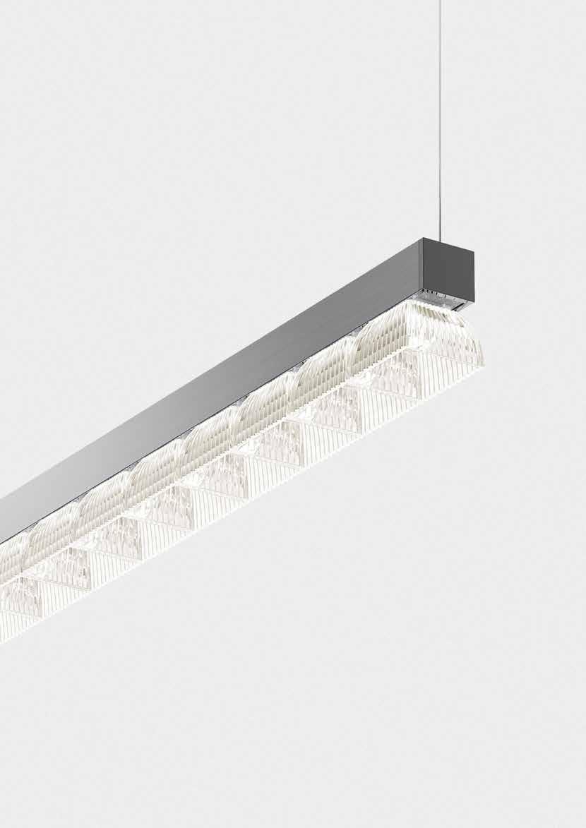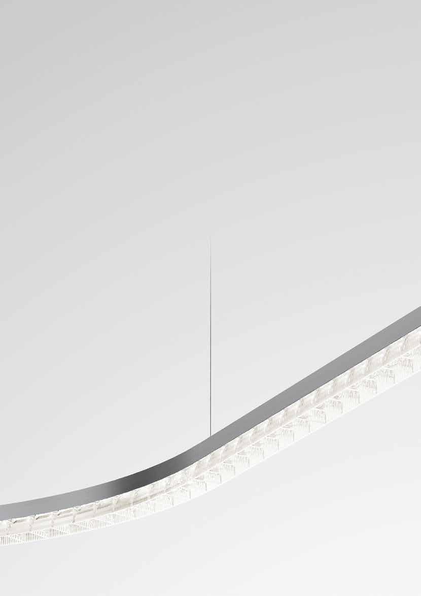 The patented optical synthesis is the principle through which to design the reality of lighting within space thanks to a system of linear or curved modules and 90° jont.