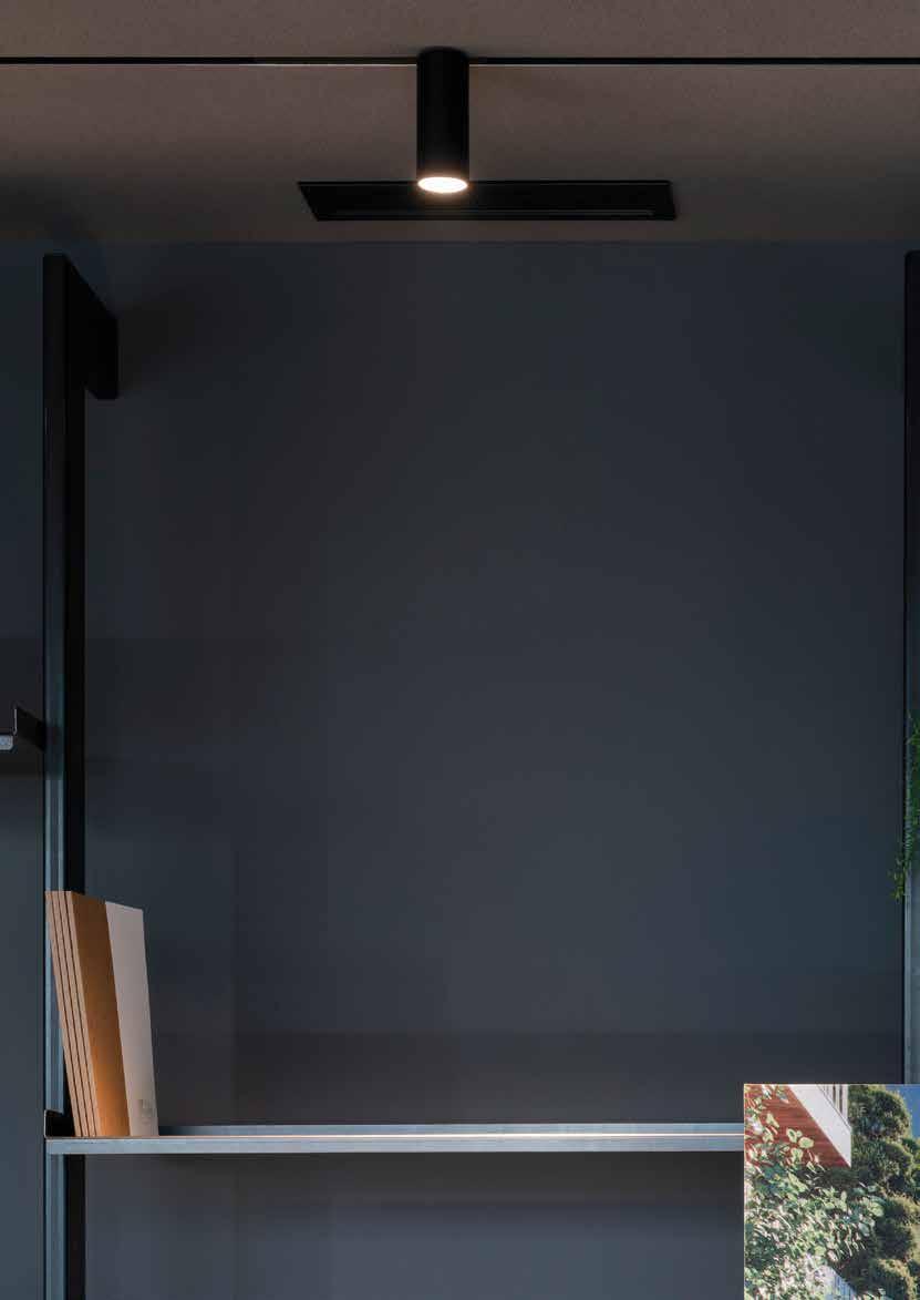 Two installation grooves (upper/bottom) are avaiable along frames in order to let the spotlight assume, between the others, the following orientation: - azimuth with respect to the floor - centered along the opening - laying on the inner framing profile remaining fully hidden