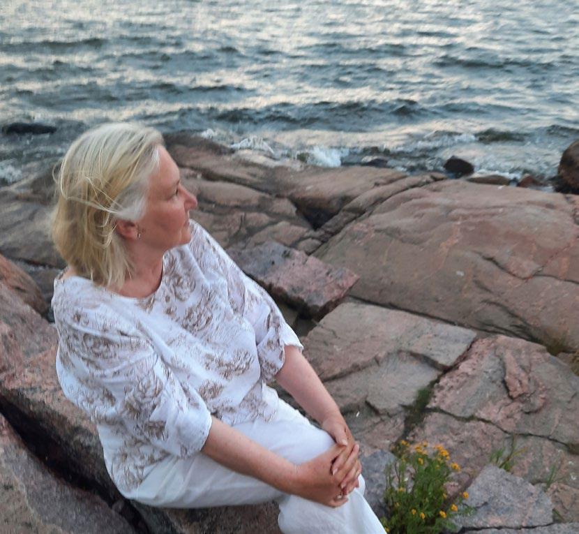 La peinture c’est pour moi un voyage dans le monde des couleurs et de la lumière, un voyage ludique ou sérieux à la fois, parfois les deux. Historienne de l’art de formation, je peins activement depuis près de 20 ans. J’ai étudié la peinture pendant plusieurs années, notamment au Centre de cours de la Société des artistes d’Helsinki, et je participe chaque année à des expositions collectives et conjointes. Je travaille aussi bien à l’huile qu’à l’acrylique. Dans les peintures à l’huile, je suis particulièrement attirée par la lenteur contemplative rendue possible par la technique, la superposition chatoyante et mate des couloirs. Avec les couleurs acryliques, j’apprècie la possibilité d’explorer des aventures visuelles grâce aux techniques polyvalentes. Ma vie a également été marquée par la découverte de nombreuses autres cultures. J’ai étudié le hautbois quand j’étais jeune et j’ai joué dans plusieurs orchestres amateurs. La musique a toujours occupé une place spéciale dans mon coeur. L ’ikebana, l’art floral japonais, fait également partie de ma vie et j’ai suivi une formation pour devenir professeur d’ikebana. J’ai par ailleurs soutenu ma thèse de doctorat en philosophie à l’Université d’Helsinki.