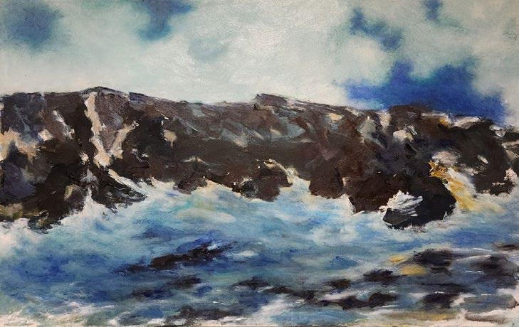 Taiteeni elää kahdessa maailmassa — kuin päivä ja yö, kuin hengitys ja uni. Toisessa maailmassa on meri. Merellä vietetyt vuodet ovat tehneet siitä erottamattoman osan sisäistä maailmaani. Teoksissani meri ei ole pelkkä maisema, vaan luonnonvoima: se puhuu hiljaisuudessa, valon välähdyksissä ja aaltojen rytmissä. Toinen maailmani syntyy unista — kuvien ja runollisten sanojen virrasta. Pyrin tavoittamaan unen ilmapiirin: katoavan, kerroksellisen ja syvän. Se on symbolien ja sanattomien merkitysten tila, jossa teemat ilmestyvät kuin kuiskaukset, kuin tuntemattoman hengitys. Jokainen teos on kutsu sisäiseen dialogiin, jossa todellisuuden rajat hälvenevät ja tunteet puhuvat sanoja voimakkaammin. Minulle taide ei ole vain näkyvää, vaan myös sitä, mikä jää siveltimenvedon hiljaisuuteen. Maalaukseni ovat matkoja paikkaan “tässä ja ei missään” — tilaan, jossa näkyvän ja koetun välinen raja katoaa. Taide on minulle tapa kuunnella hiljaisuutta, vangita valo ja taltioida mieliala, jota sanat eivät voi täysin kuvata.