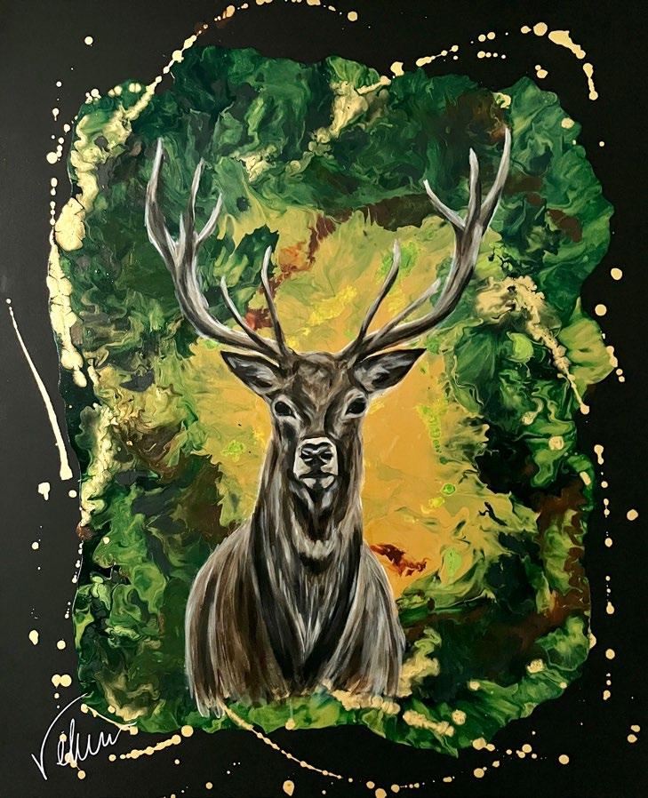 Pia Hovi's paintings honor the nature and animals in forests. The power and sensitivity of animals are present at one time and all become entangled as one entirety. The painting includes always the lesson and certain message for us humans. It is created by intuitive fall to become abstract with needed realism. Painting leaves room for viewers own choices and possibility to reflect own inside world through the hidden,elements.