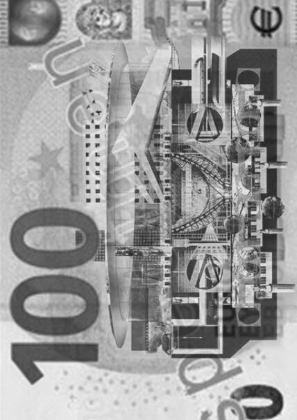 38.DE VORMGEVING IS SYMBOLISCH VOOR DE VERDEDIGING VAN DE PERSOON, DOOR EEN KWANTUMCOMPUTER DIE RAZENDSNELLE BEREKENINGEN MAAKT EN FUNGEERT ALS EEN BORSTWERING.[The democratic architecture machine P.110]