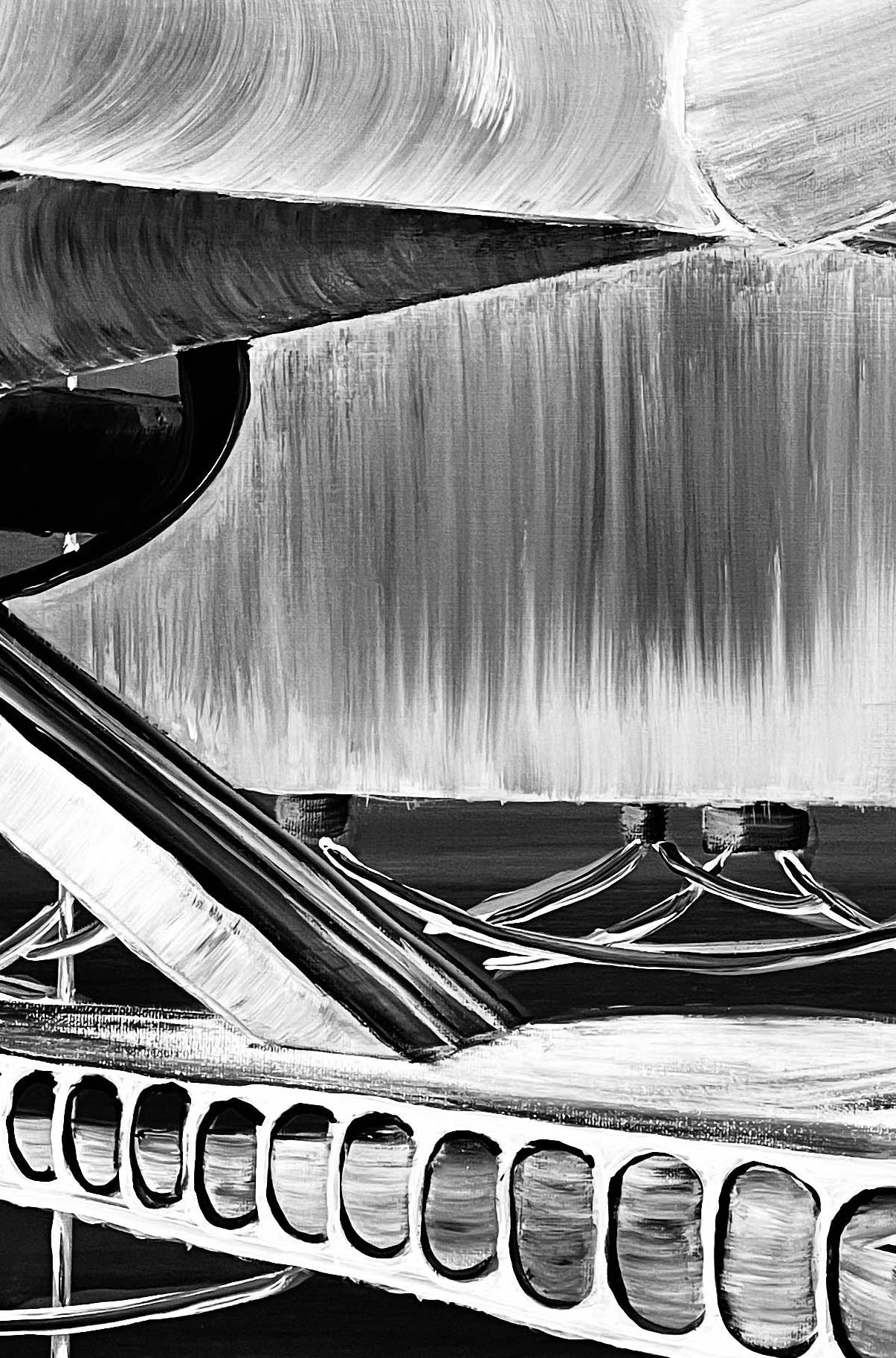 Overal in de ruimte van het forum zweven marmeren figuren die spreken. De ene heeft de vorm van een poort, de andere van een koepel en weer een andere de vorm van een venster(34). Als ze met de figuren hebben gesproken, zijn ze vol kennis. Zoveel geheugen heeft de Human nog nooit geüpdatet. “Je kunt weer lachen en praten,” merkt Dees op. Vervolgens dalen ze af door een smalle gang(35) naar de cloud. De muren van reliëfglas hebben vierkante openingen waardoor lichtstralen op de treden vallen. De reflectie in de structuur van het glas laat de belasting van het WST-systeem zien. Langzaam wordt het licht zwakker en weer harder. In de constructie van de netwerkpoort zijn netwerkkabels te zien die het interne geheugen met de cloud verbinden. Eenmaal aangekomen in de cloud zien ze een groep mensen vol verbazing door grote ronde vensters naar buiten kijken. Human voelt een frisse wind door de ruimte gaan. Ook hoort hij gezoem. De vloer waarop hij staat is een stalen glimmende plaat met een gridstructuur waarin roosters te zien zijn. Door de roosters lijkt de frisse wind te komen. Als hij naar beneden kijkt, ziet hij miljoenen lampjes knipperen van de identiteitsprocessors(36). Dees stoot hem aan en zegt: “Moet je dat zien!” Human kijkt omhoog en krijgt de schrik van zijn leven. Terwijl hij aan de vloer genageld staat, kijkt hij recht in de ogen van een beest dat wel tien keer groter is dan hijzelf. Het is transparant en bestaat uit draden. Nadat het enige tijd naar binnen heeft gestaard, zweeft het beest verder langs de grote vensters in de cloud. “Kijk,” zegt Dees, “er zijn er nog veel meer.” Human ziet het ook. Er zweven ontelbaar veel transparante beesten rondom de cloud die op kwallen lijken. Human krijgt de rillingen over zijn lijf als hij eraan denkt dat deze normaal om hem heen zweven. Dan ziet Human nog iets bijzonders zweven; het lijkt wel een wiel binnen een wiel(37). De wielen draaien om elkaar heen en in de wielen zitten verschillende ogen. Het lijkt alsof deze wezens de kwallen besturen door middel van datatransmissie. Mensen in de cloud kijken verbaasd door de vensters naar de cyberaanvallen die door deze kwallen worden uitgevoerd. Human voelt zich veilig nu hij hier is. Hij staat achter een borstwering van een kwantumcomputer(38) en hoort op de achtergrond processors die berekeningen en voorspellingen maken. De kwantumtechnologie maakt nauwkeurige berekeningen met grote hoeveelheden data uit het WST-systeem en simulaties van aanvallen door bewegende kwallen. Wanneer Human en Dees naar het breedste deel van de cloud lopen, lopen ze onder de kwantumcomputer door tussen de buizenstelsels die data transporteren. Dit is om de identiteit van de gebruikers van het Dutch mainboard te beschermen. De cloud lijkt zich te openen als een levend schilderij(39) en Human en Dees zien de contouren van een oude democratie, zoals Trias de driehoek had gezegd. Om de cloud te verlaten moeten ze door het Dutchfirewallsysteem. Deze toren meet de intensiteit van kwallen aanvallen in de ruimte aarde. Het is aangesloten op het Dutch mainboard. Human en Dees staan te wachten op de hyperloop en dromen weg van alle indrukken en kennis. Ze zien hoe indrukwekkend(40) dit verdedigingsmechanisme in het WST-netwerk hangt en hoe de hoeveelheid kabelnetwerken vervlochten zijn door de constructie om de hardware van het Dutch democratic 5D space force defense system aan elkaar te verbinden. Eenmaal aangekomen op de stalen vloerroosters onder de bodem raken ze niet uitgepraat over de update van hun eigen interne geheugen en identiteit. Het voelt als een bevrijding om kennis te hebben, zegt Human, en Dees knikt.